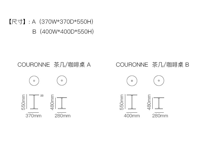COURONNE 茶几/咖啡桌 系列尺寸/示意图
