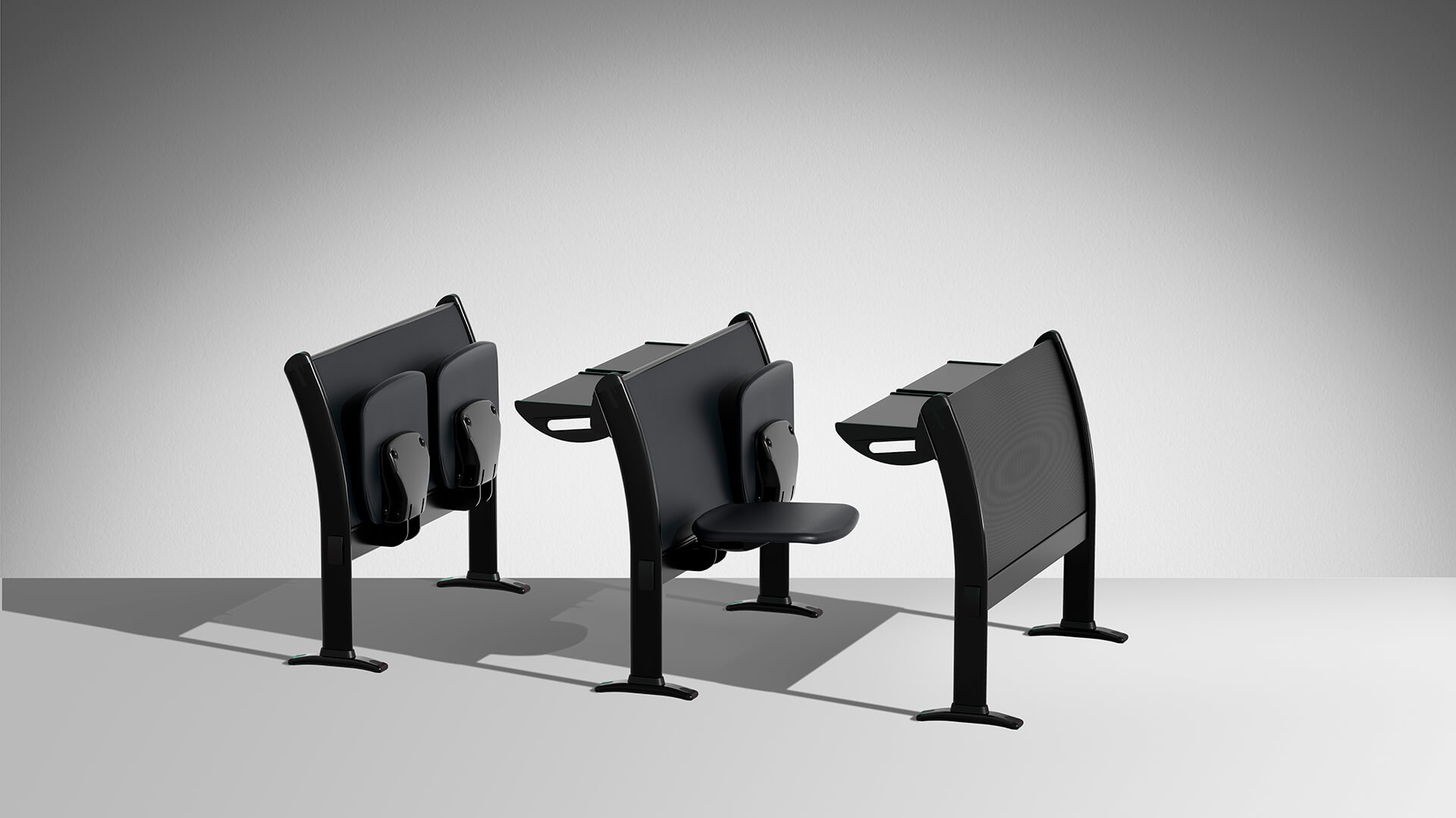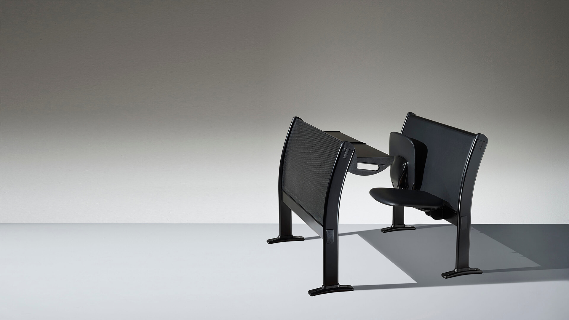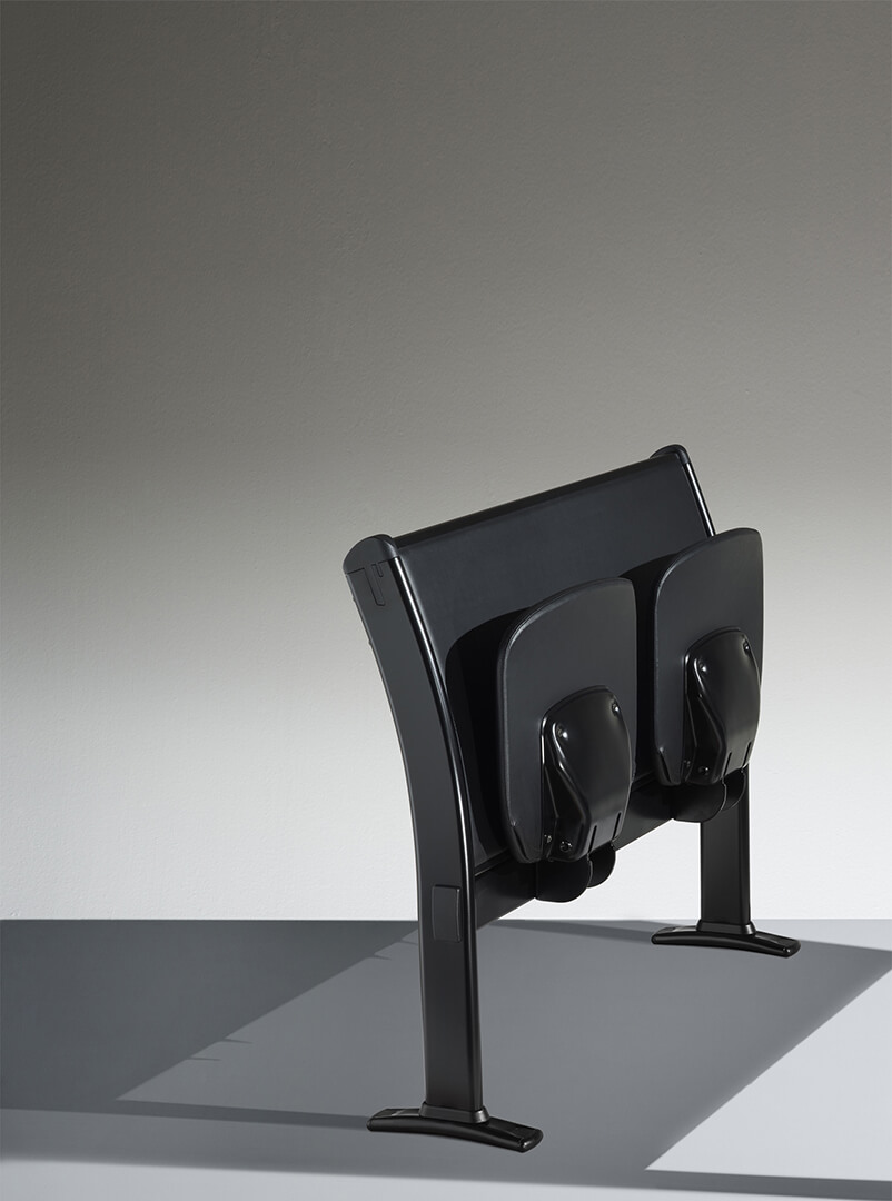多功能的桌子和座椅系统,可放置两三个位置,直排模块化,非常适合大学,培训室或教学。特别注意结构的细节以及机芯的合理化,以确保较高的技术性能和抵抗力。该结构包括一个钢制地板支架,一个椭圆形的管脚以及一个由矩形管制成的水平连接梁,一个可用胶合板或模压板制成的连续靠背板。工作台由带ABS边缘的双层托盘组成,有固定版本,可折叠或带有防恐慌系统可伸缩。