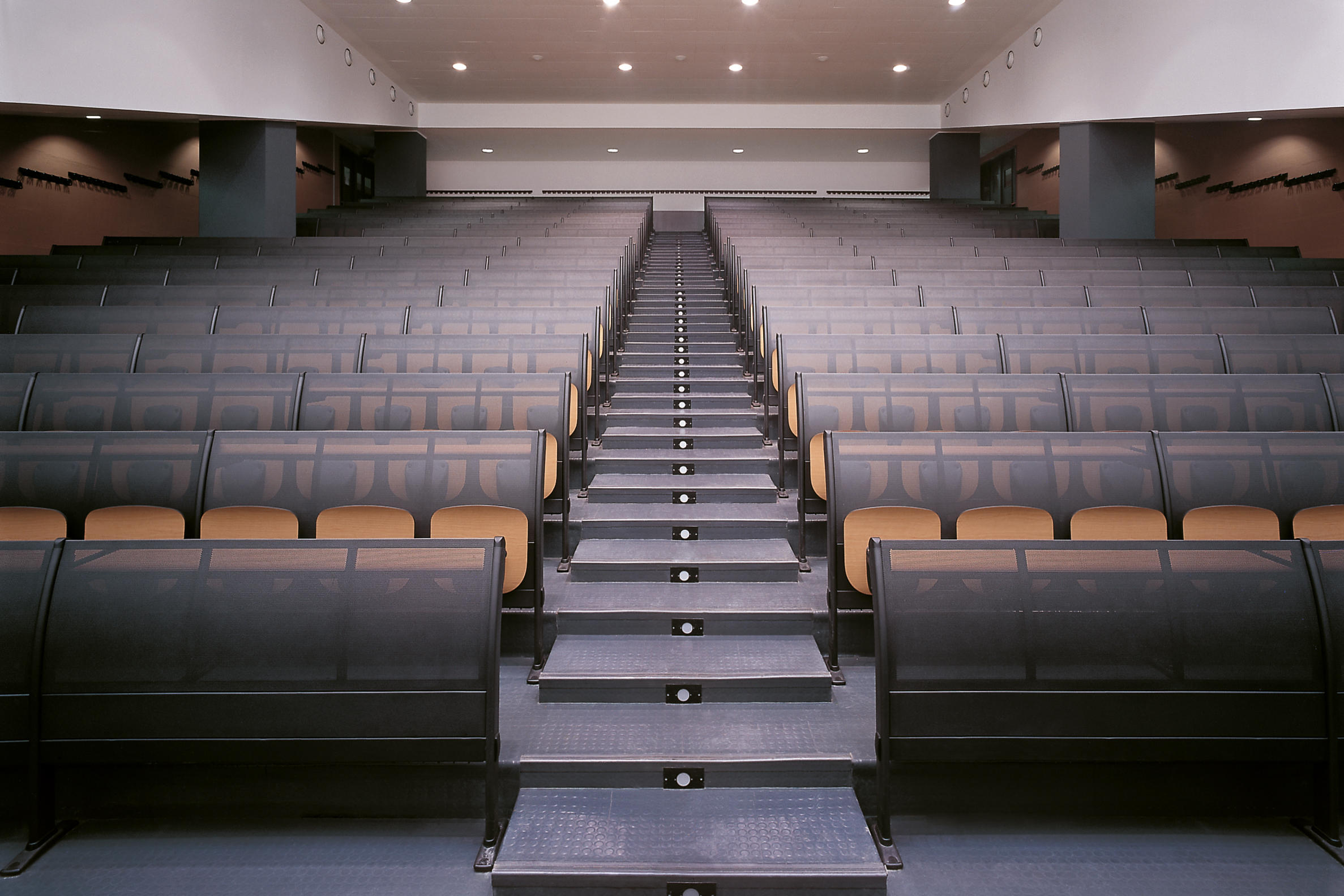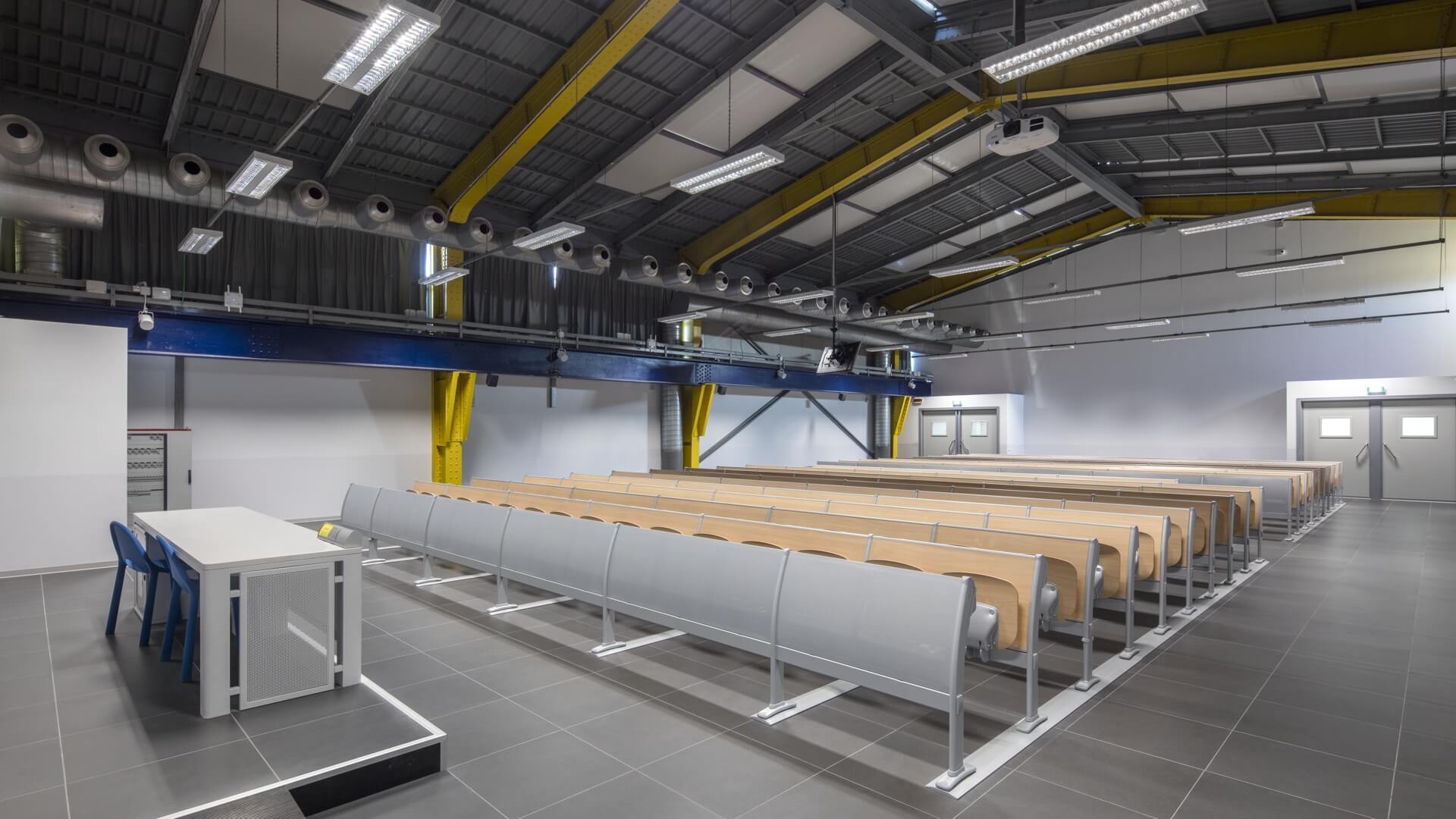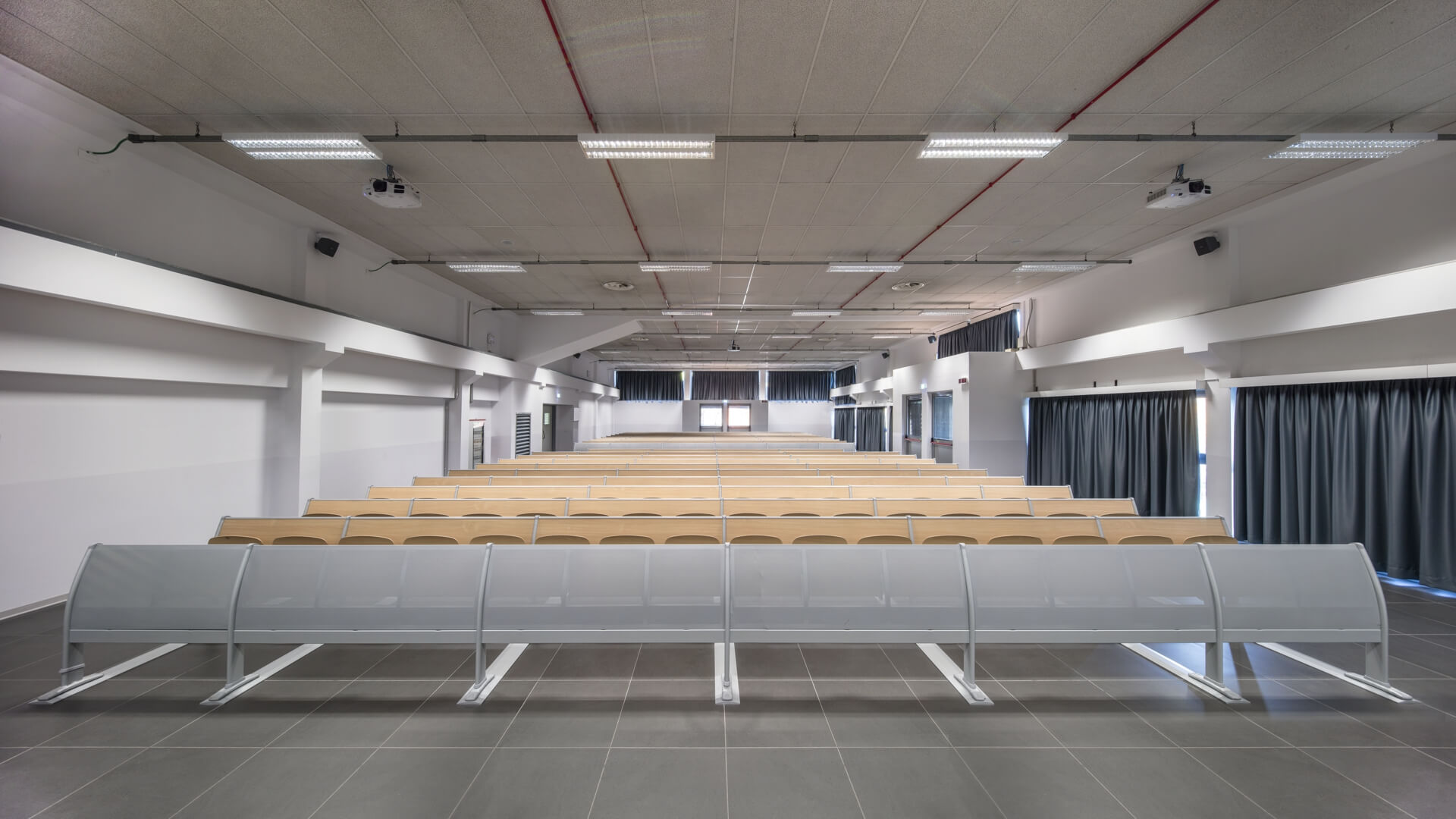 多功能的桌子和座椅系统,可放置两三个位置,直排模块化,非常适合大学,培训室或教学。特别注意结构的细节以及机芯的合理化,以确保较高的技术性能和抵抗力。该结构包括一个钢制地板支架,一个椭圆形的管脚以及一个由矩形管制成的水平连接梁,一个可用胶合板或模压板制成的连续靠背板。工作台由带ABS边缘的双层托盘组成,有固定版本,可折叠或带有防恐慌系统可伸缩。