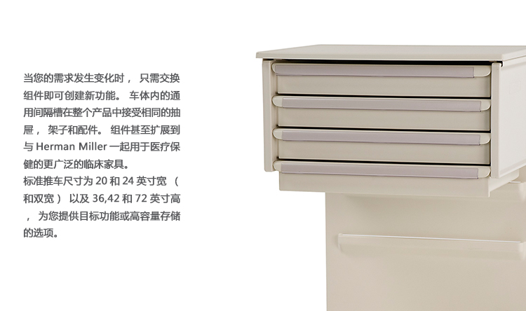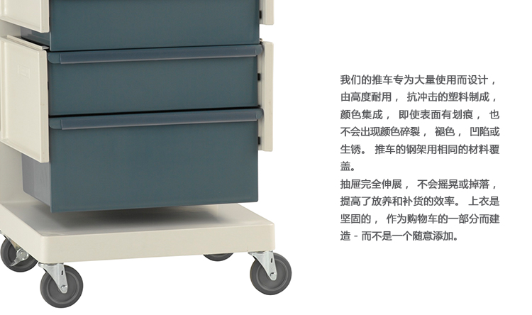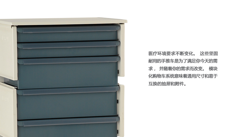 医疗环境要求不断变化。这些坚固耐用的手推车是为了满足你今天的需求,并随着你的需求而改变。模块化购物车系统意味着通用尺寸和易于互换的抽屉和附件。