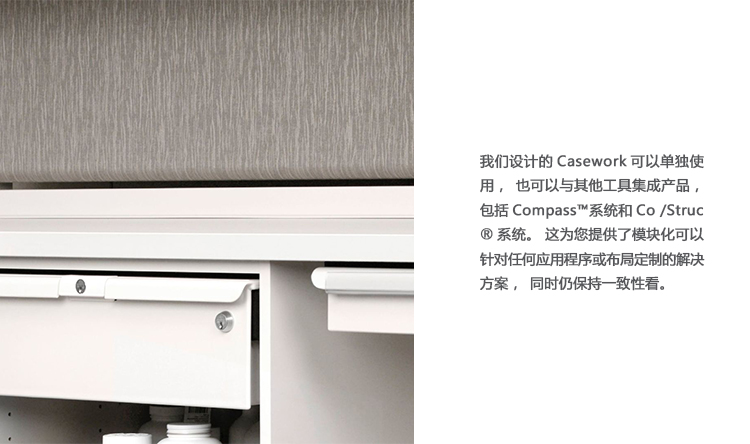Herman Miller Casework遵循Propst蓝图,其产品包括一系列架空机柜,储物柜,底座单元和带后挡板的工作台面。 匹配的饰面和可互换的组件使我们的案例工作系统能够在几乎任何医疗保健环境中与我们的可移动模块化产品相互补充和集成。
