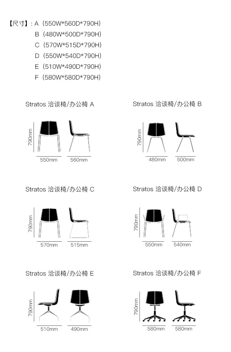 Stratos 洽谈椅/办公椅 系列尺寸/示意图