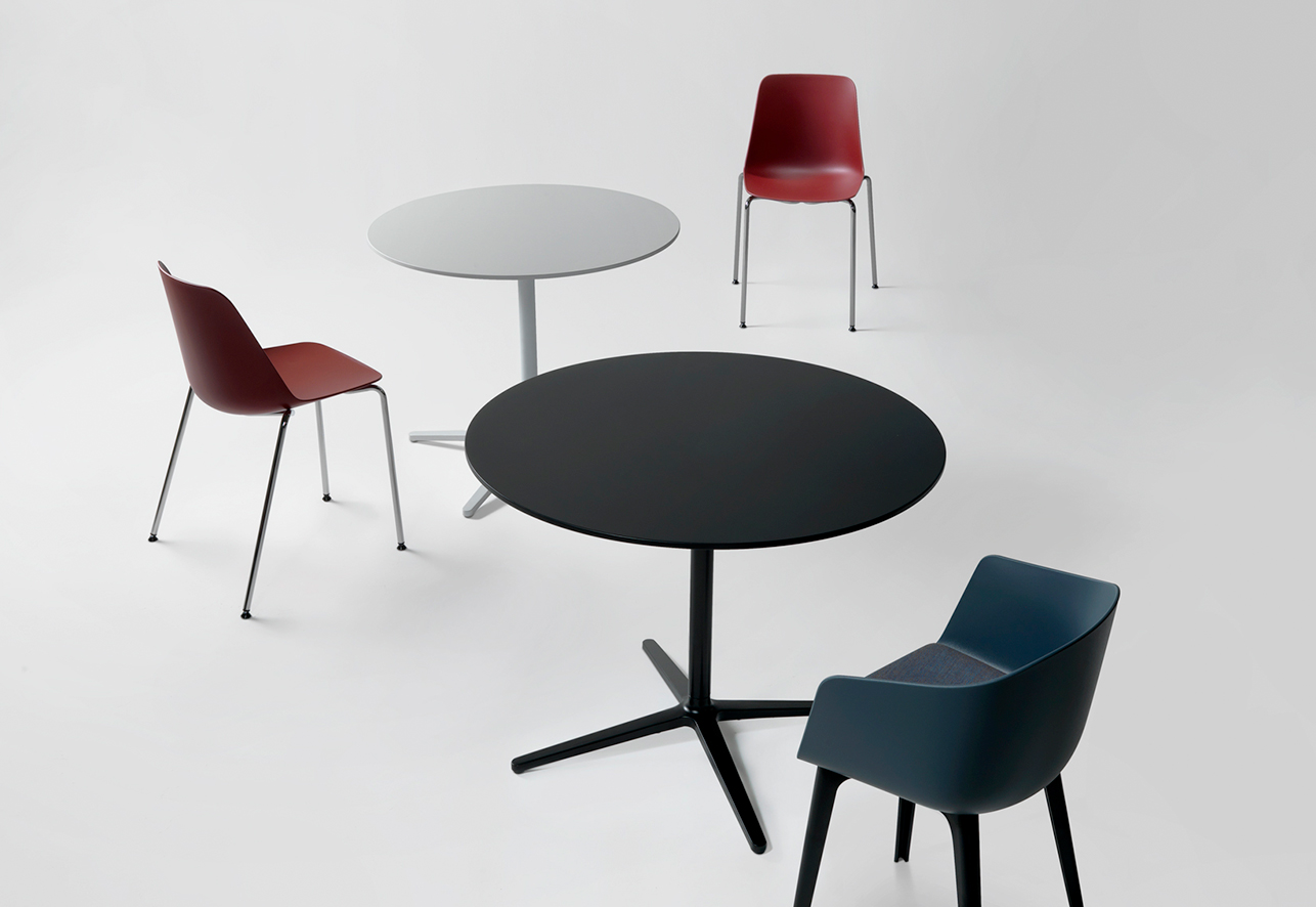 材料和涂层之间的关系显示出“混合搭配”的态度:一种连贯的组合系统,可在使用环境中促进标识和协作。开放和灵活的椅子和扶手椅计划,可满足对多功能性,舒适性和可持续性的需求。收集与制作 RE MAX ® 新材料100%回收PP和木材。