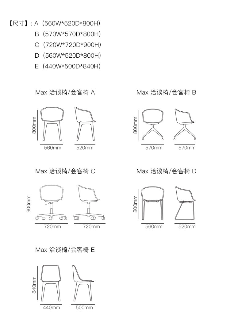 Max 洽谈椅/会客椅 系列尺寸/示意图