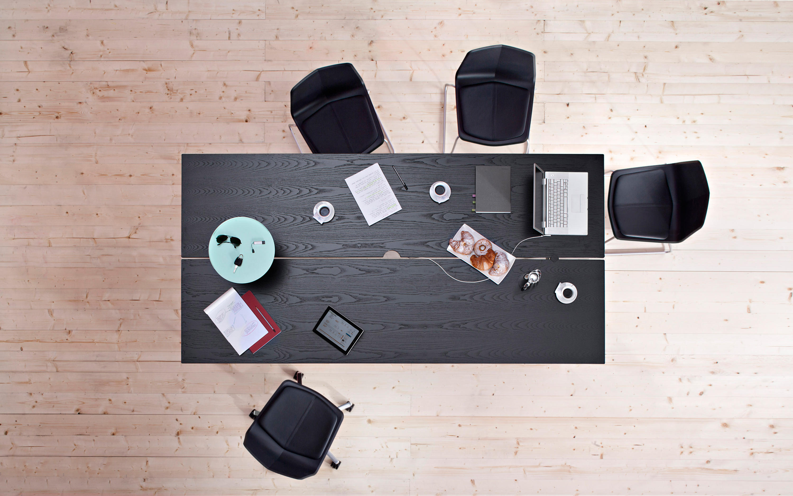 偏置工作台的特点是它的表面在纵向上分为两个部分,因此可以更有效地管理工作表面。两个平面的分离狭缝可同时用于管理电缆,或充当灯,隔板和各种其他附件的支撑。因此,可以将常用表转换为实际工作表。