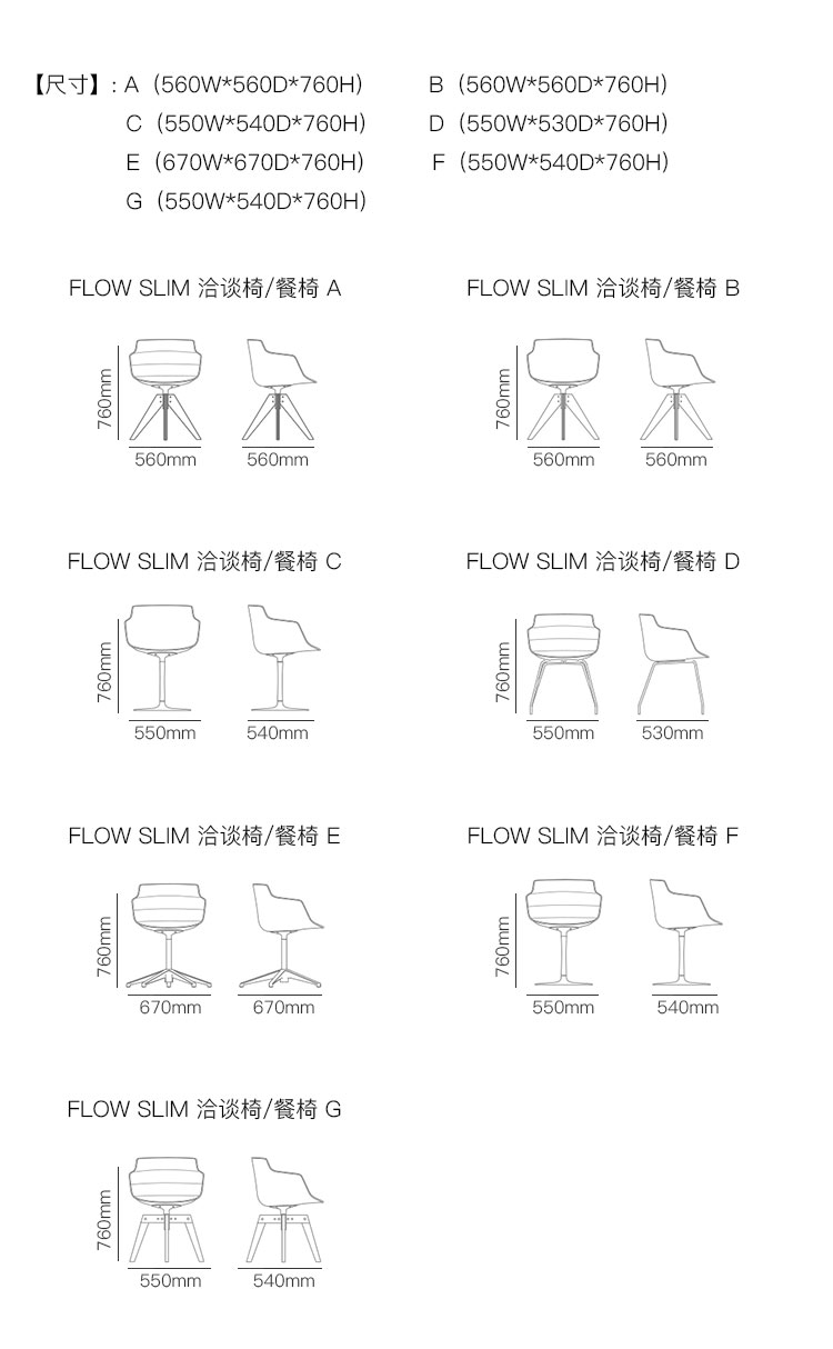 FLOW SLIM 洽谈椅/餐椅 系列尺寸/示意图