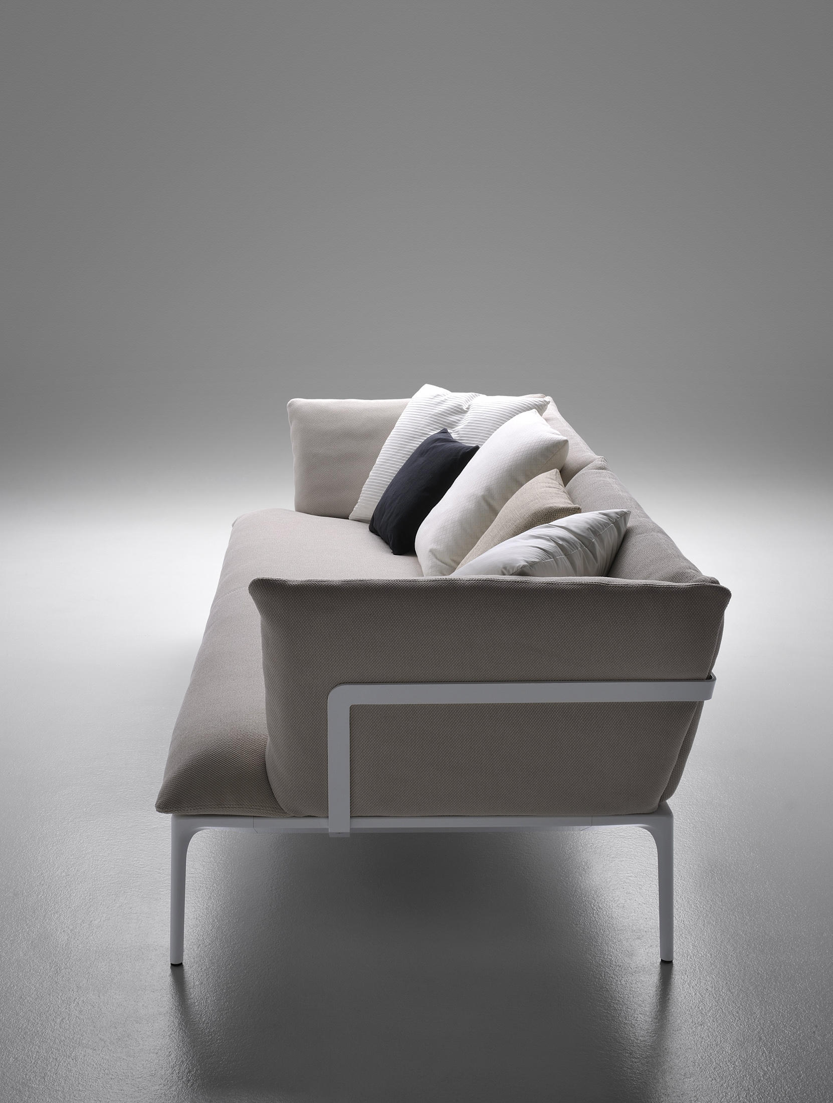 具有强烈个性和宽大靠垫的扶手椅和沙发,可提供出色的舒适性和出色的功能性。提供两种不同的座椅深度和两种不同的靠背高度,可确保舒适的坐姿并能适应当下的需求。 靠垫 靠背和扶手与管状铝和用于紧固到简档特定系统内部承重结构。可变密度泡沫聚氨酯填充和盖在罗洛梅Fill®(聚酯微球体)和聚酯软填料。这种特殊的组合物衬垫使填充自然柔软性和弹性,长寿命和高舒适性。 坐垫与topstitched接缝和凸起轮廓。 帧 。挤压铝框用松紧带,铝压铸件英尺框架漆成白色亚光,石灰色和无烟煤灰色。 蒲团 该系列包括三个新车型蒲团:L75xD75,L150xD75和L150xD44与框架H30厘米,总是在相同的光洁度作为沙发, 盖 在织物或皮革的内饰覆盖了沙发的每一个部分,是完全可拆卸的。 如果需要,可选的附加盖是可用的。在皮革所有单位都有,根据其大小,并在意大利MDF的自由裁量权,一个或多个接缝。 煤层 这些对比鲜明的接缝仅针对高靠背款式来表征和识别Yale X系列。有白色,中灰色和无烟煤色可供客户选择和组合。