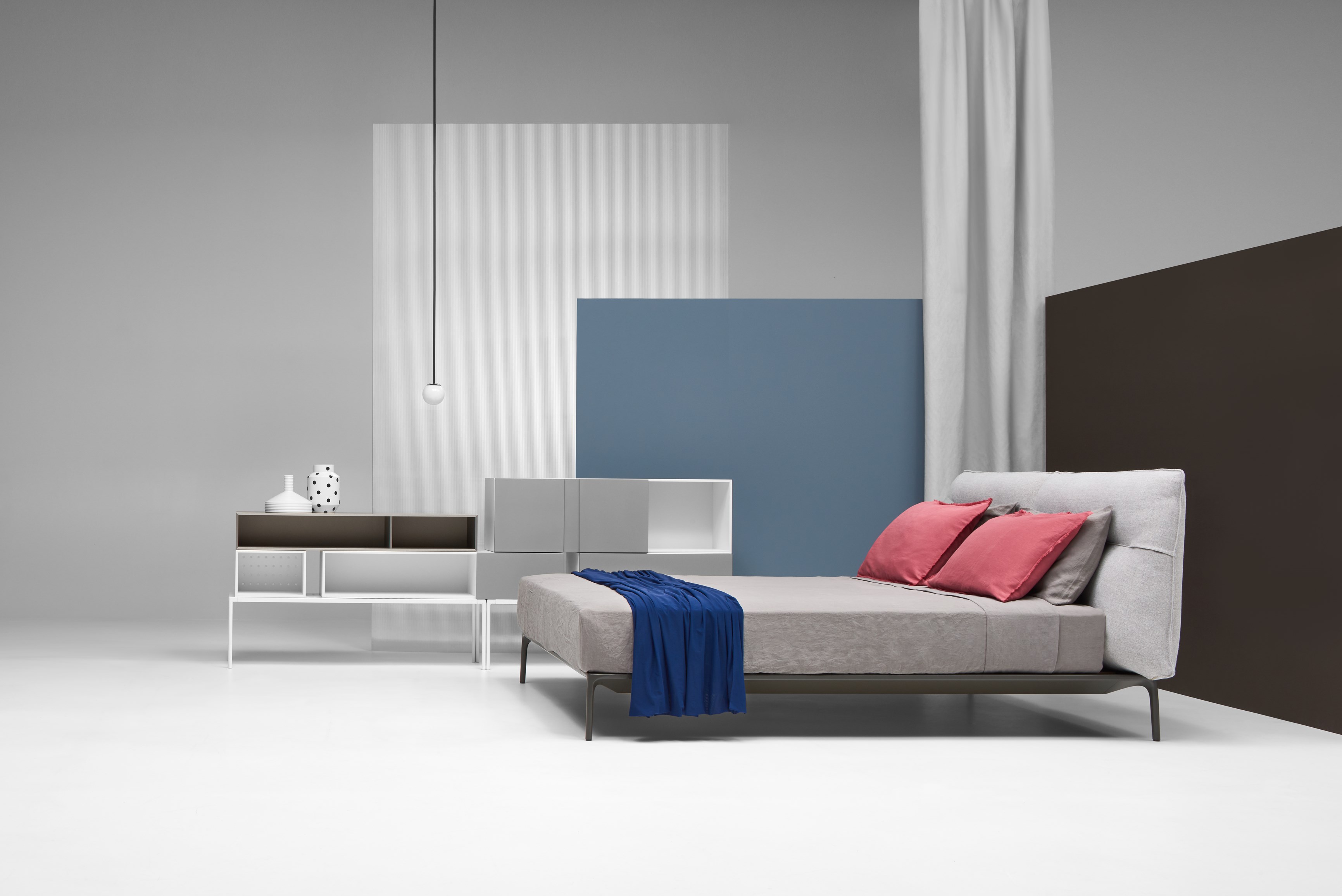 床在不同的版本: •版本具有低床头板 •版本具有高床头板 结构 。在挤压铝,铝压铸腿结构 。在颜色白,灰石和无烟煤灰色的结构绘无光泽 覆 在所述的内饰织物或皮革覆盖床头板的每一个部分,是完全可拆卸的。 如果需要,可选的附加盖是可用的。在皮革所有单位可能,这取决于它们的大小和MDF Italia与自由裁量权,一个或多个接缝。 接缝 这些对比的接缝中的颜色白,中灰和无烟煤,这可以通过在客户端进行选择和组合的表征和识别耶鲁床收集,只为高床头变体。可用的。 板条和矫形平台 承重矫形平台在40x30mm部,粉末涂层。钢管 固定结构,具有在层叠山毛榉厚度板条8mm时,宽度70毫米并装有调节游标。移动光标沿着板条的长度允许在后腰调整刚性区域,并根据个人需求和身体形状调整床形。 骨科平台桦木胶合板,厚度为20mm,涂上水性涂料,与横槽的床垫通风非常支持统一的舒适性,刚性和更好的支持。 注:板条和骨科平台是专门设计为插入在Yale床周边结构中,它们的尺寸减小到适合该床的大小。无法安装倾斜元素。