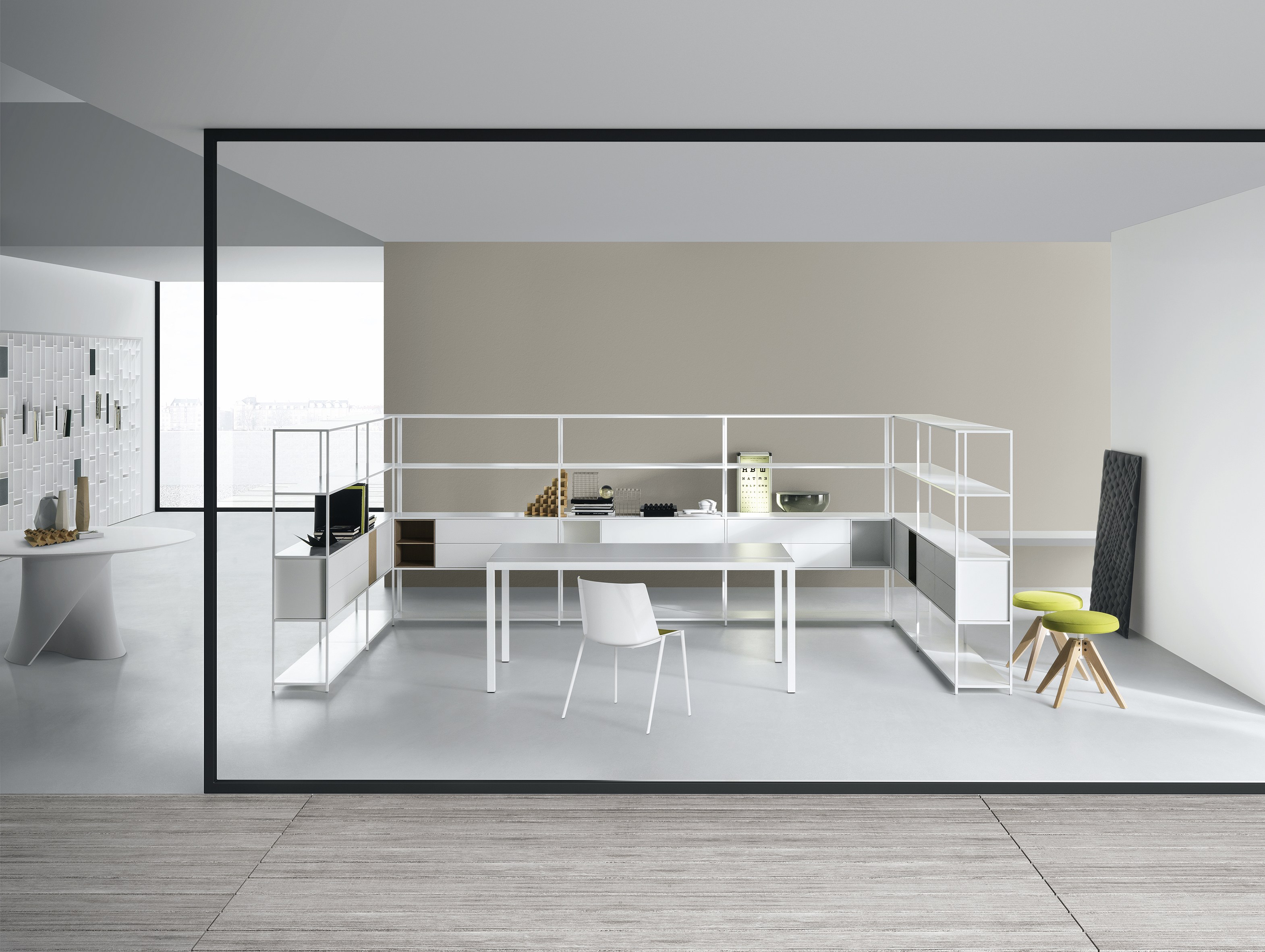 办公桌3.0-工作站系列,由铝制框架和HPL桌面(黑色或白色)组成。单色桌子配有可检查的走线槽,用于接线和电缆接入弹簧。提供以下版本: •单个版本(桌面) )与电缆管理桌面 •双版本(与前排座椅)与电缆管理桌面 工作站高度75厘米。 可用于工作站配件: •电缆管理门 •PC架 抽屉•胸部