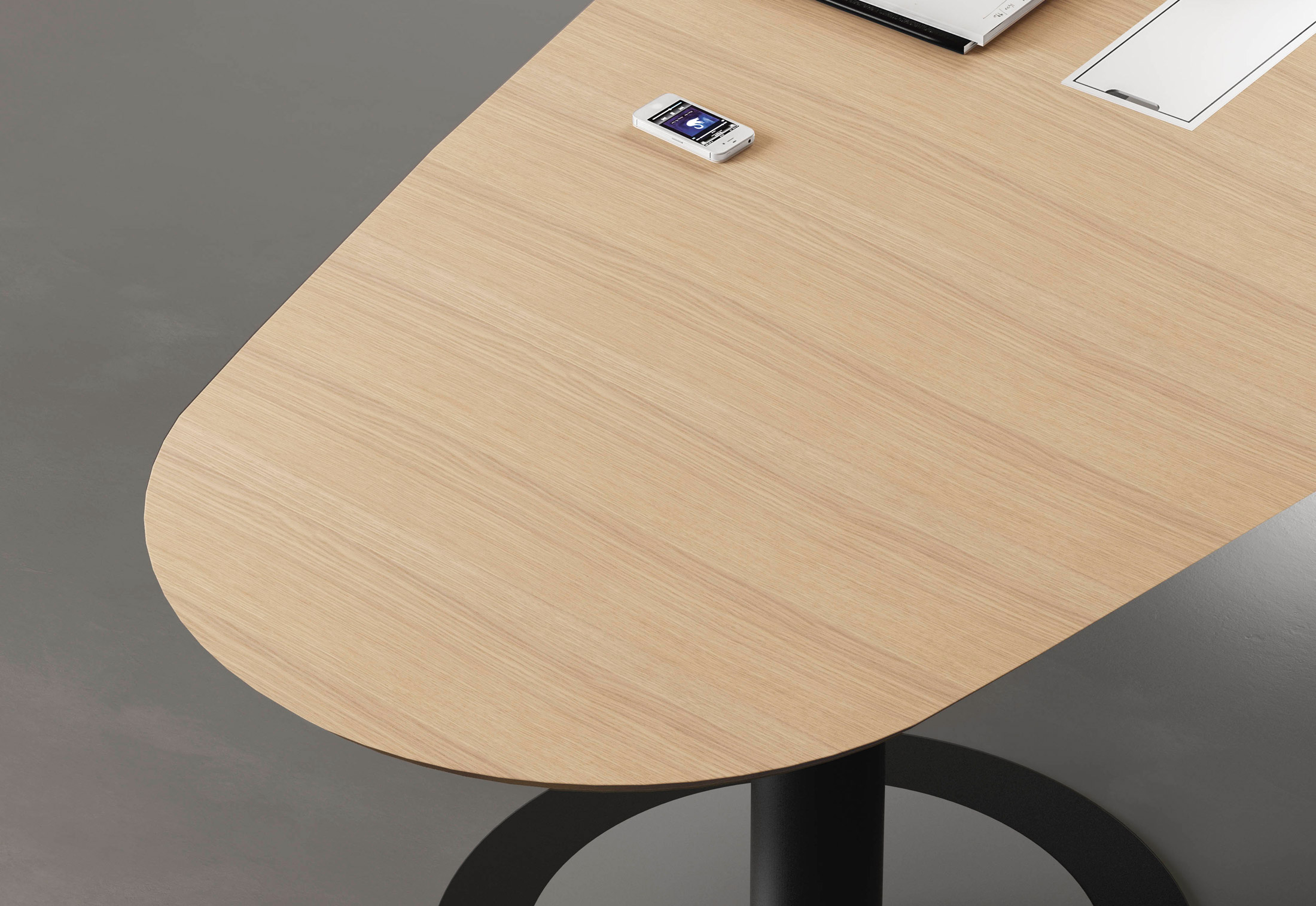 Fantoni提供一个完整的会议桌会议,会议桌有固定的顶部或模块化的形式,可以创建您自己的作品并满足最大范围的需求:从小型会议室到大型会议室。橡木,红色或棕褐色樱桃木或天然桦木。它们由圆盘形底座上的重要支柱支撑,均由钢制成。