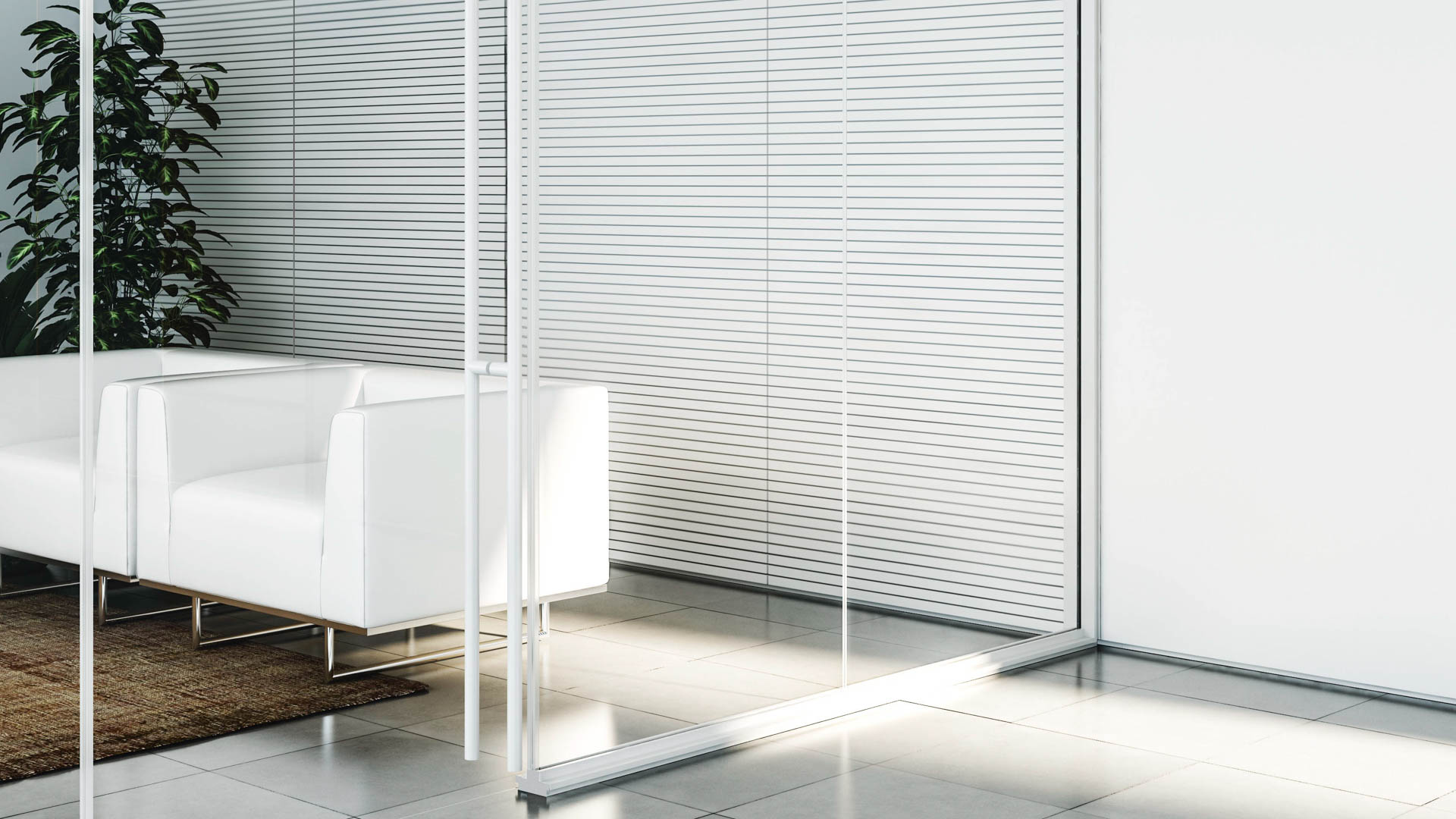 单层玻璃地板隔断墙。阳极氧化挤压铝结构型材,无涂层。具有0.38 mm PVB中间膜的5 + 5 mm夹层玻璃或具有1.52 mm隔音PVB中间膜的5 + 5 mm夹层玻璃均可使用。在标准版本中,使用透明玻璃。 明亮的空间。单层玻璃落地式结构由特定的阳极氧化铝部分组成,可让您在中心安装或偏移安装并与任一外表面齐平的单个玻璃板。使用结构性双面透明硅胶带或垂直透明的聚碳酸酯接缝将玻璃元件连接在一起,以确保平滑平齐的连接。一系列柔软的PVC密封条确保了稳定性和隔音性,这些密封条沿外部周边设置,固定了玻璃板。