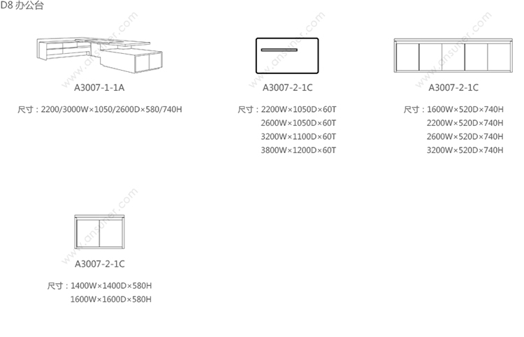 D8行政总裁桌 系列尺寸/示意图