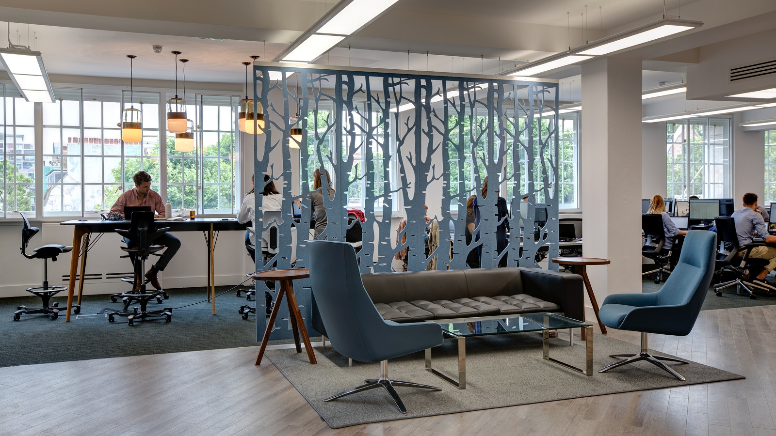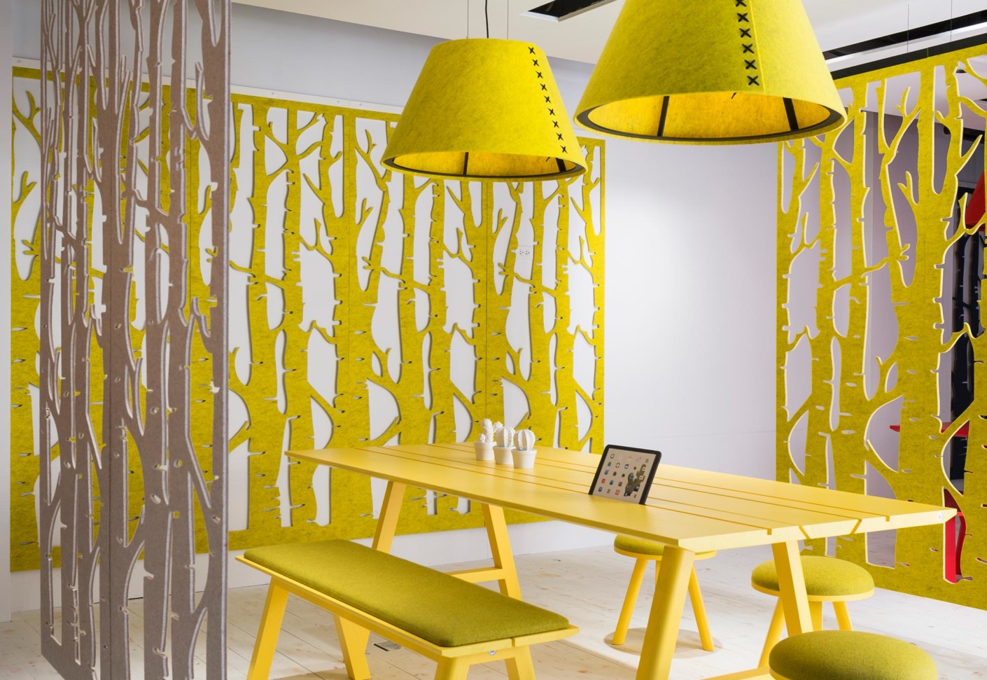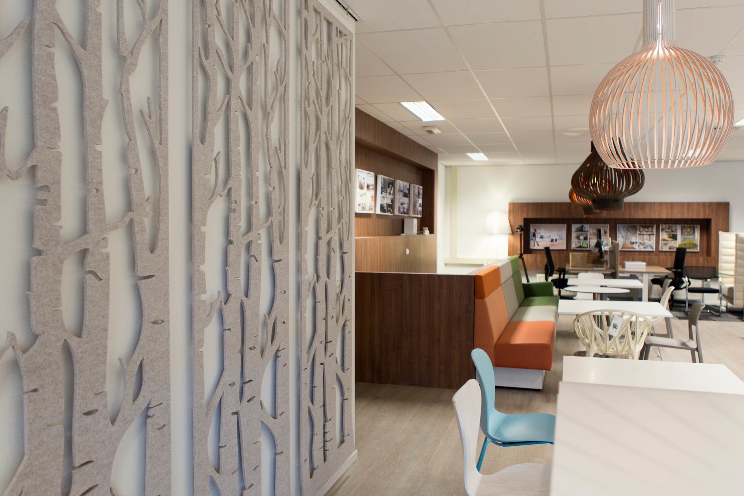 通过这种浮动的装饰面板集合创造一个隐私层,这些面板提供具有声学优势的艺术风格。它们将有助于减少声音的传递,并减轻诸如铃声之类的高音以及键入和点击的声音。它是一种优雅的元素,可将房间划分为一体。这些吸音板由双层BuzziFelt制成,采用大胆的图案进行精确切割,并具有一系列亲生物和几何图案。 您可以选择将BuzziFalls安装在墙壁或天花板上还是悬挂在上面。BuzziFalls Rail是另一种选择,它可使面板轻松滑动-创建可移动的房间隔板,从私人空间转移到公共空间。 面板在一条三米长的轨道上运行,面板从左向右滑动。通过为导轨安装两层平行轨道来创建滑动门的效果。 使用可用的新材料选项BuzziFelt Printed将BuzziFalls提升到一个新的水平 。如果您无法决定自己的喜好,请从10张照片中进行选择,并选择一张或两张照片的组合来选择不同的外观。 吸音毛毡结构可确保从正面到背面都具有充分的声学性能。它减轻了区域之间的声音传递,并吸收了高频音调,例如同事的颤音,敲打声或铃声,这使其成为开放空间中的理想空间分隔器。
