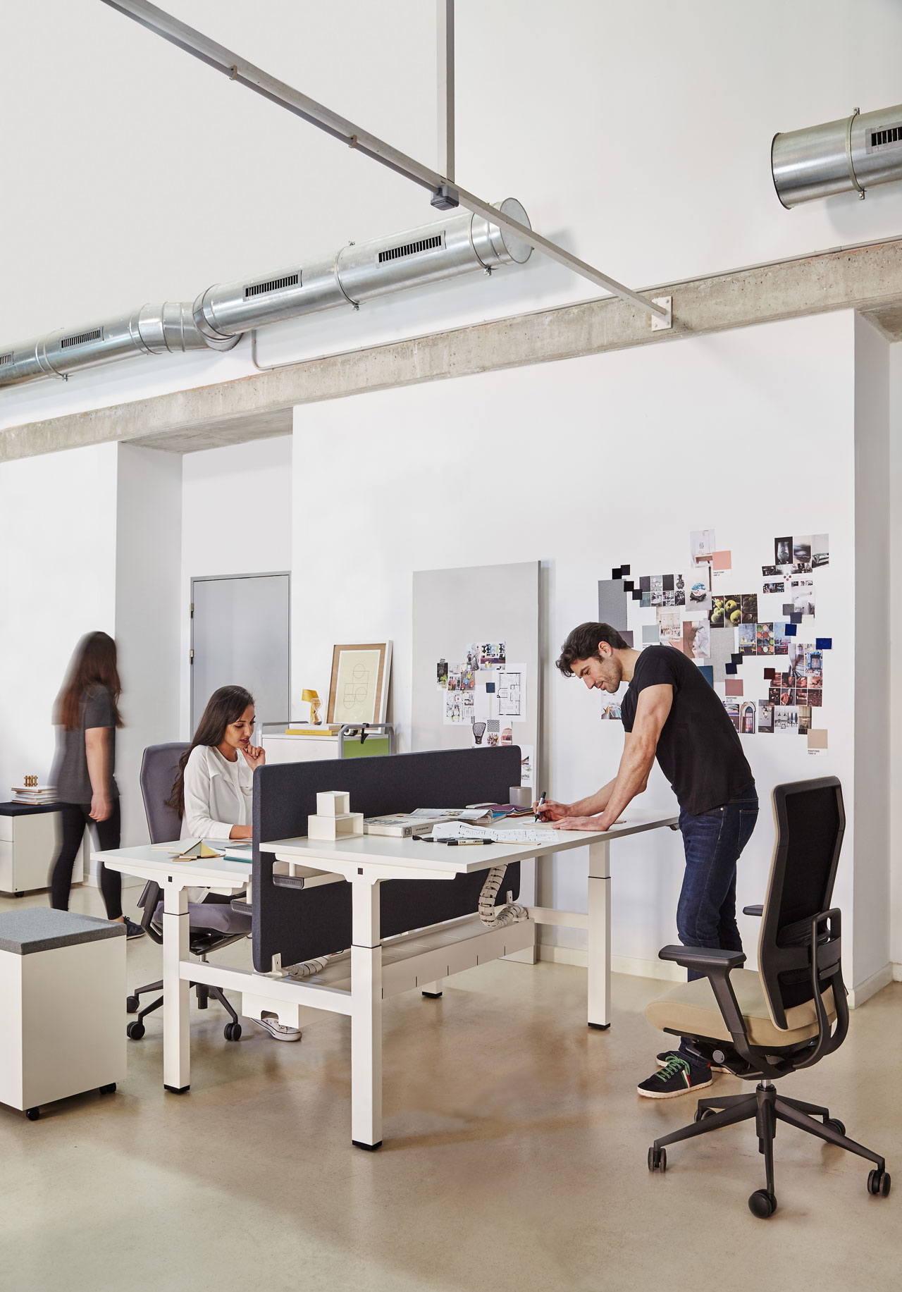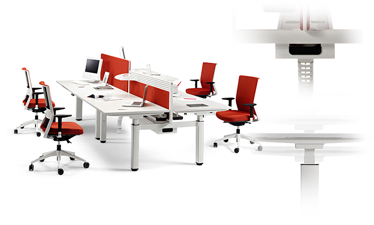 机动性办公桌,一个可以可调并固定办公桌高度的概念,在你工作的时候同步管理你的健康。在每天工作几个小时里,不仅能带来积极的健康益处,还能让员工集中精力提高工作效率。