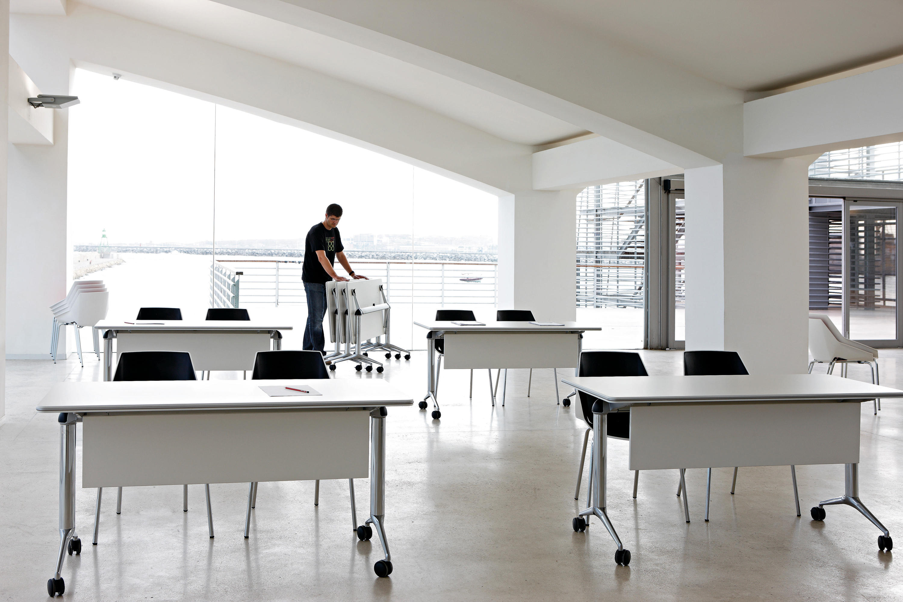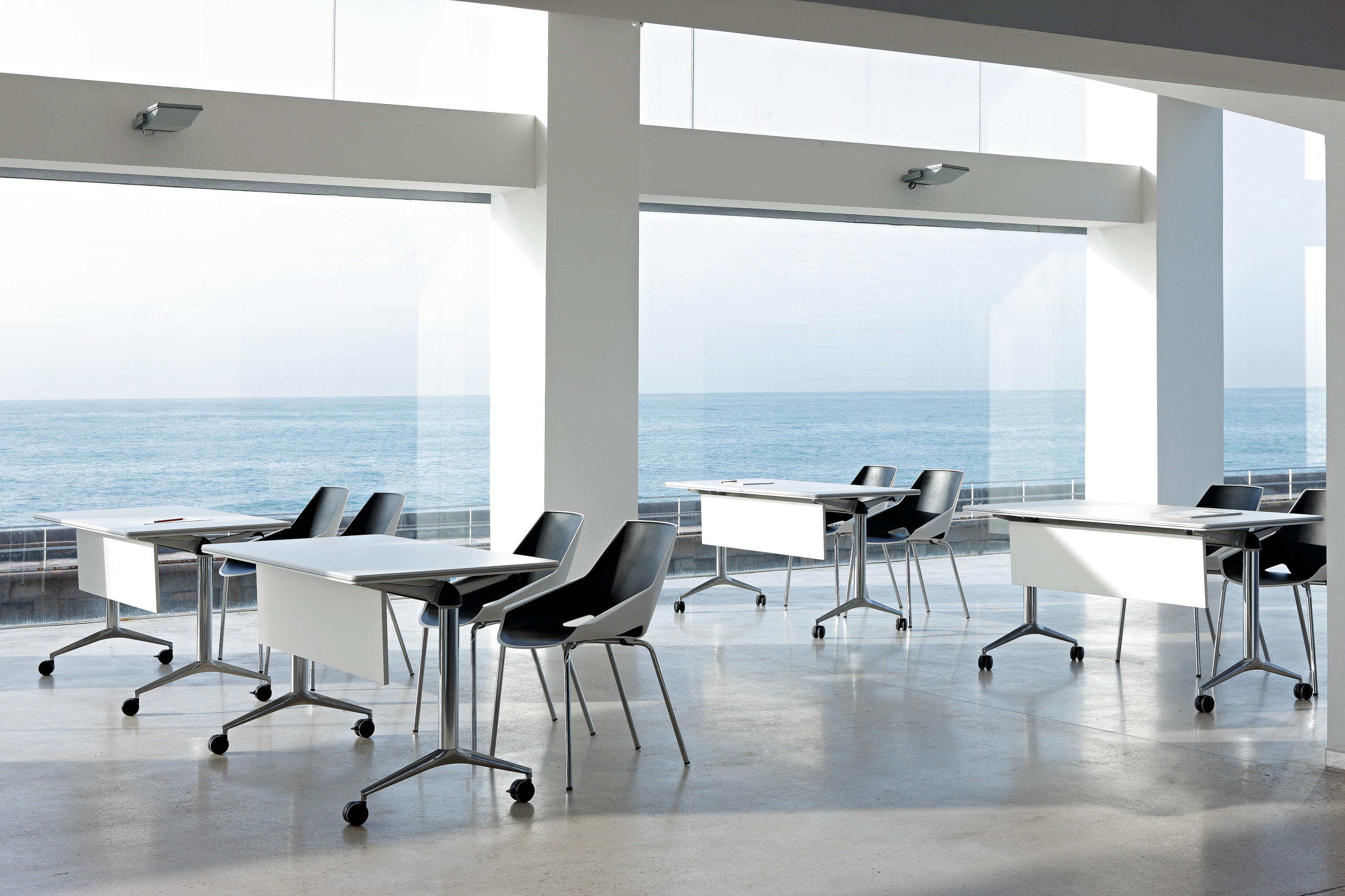 Trama最大的优点之一:能够进行组装,拆卸和存储。2.脚轮的设计为Trama提供了流动性,适用于各类会议场所.