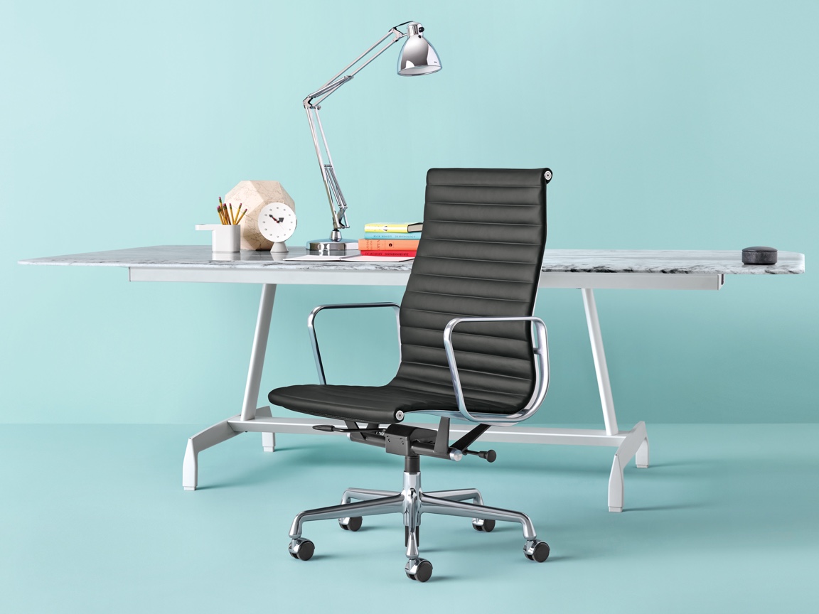 Charles与RayEames夫妇是20世纪最有影响力的火狐HUOHU(中国),卓越的设计涵盖了火狐官方网站、建筑、影像与平面设计。他们从二次世界大战中美国海军的实验计画中学习经验并发展可谓是现今工业中使用模铸胶合版的先锋,这对设计界的超级夫妇档自1940年参与了由MOMA举办的有机火狐官方网站设计大赛,自今已有近百件他们的作品被各大博物馆所永久典藏。 Eames® Soft Pad Side Chair(伊姆斯软包会议椅)是夫妻俩1958年设计的,是在全铝系列的基础上发展的另一系列Eames产品。舒适系列在全铝的椅架上增加了皮革制的柔软坐垫和靠背,高级铝合金制作,压模四星脚,可旋转。背垫和坐垫,采用西皮,具有透气性强,内部填充高密度定型绵,不易变形,不老化,依人体坐姿,符合人体工学,耐水及对人体无害等优势。椅子扶手选用优质电镀铝合金扶手,手感舒适,永久不生锈。转椅底盘为多功能底盘,可以保护使用者长时间坐用腿部健康,且作为高度可多定位调节。气压棒采用的气杆是正规厂家出产的外贸气杆,每一根气杆都有钢印,经过严格SGS检测的才可出厂,旋转、升降自如基本无声响,使用寿命长,可承受250kg,可升降数万次,将椅面调至与膝盖同高时,使用者坐下后双脚跟可垂直平放于地上,且大腿与地面平行,最符合人体工学理论,使用者长期久坐,也不想疲惫。办公椅脚为铝合金材质永久不生锈、承受能力强,安全更放心。椅子脚轮采用优质电镀片脚轮,耐用而美观,可以随意变换位置,贴心更方便,具有防震及防松脱,让椅子的安全性能更加可靠。
