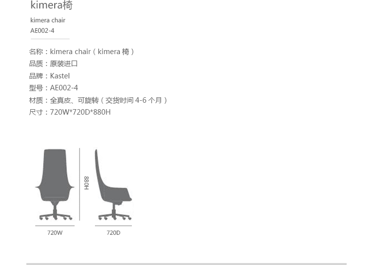 Kastel是一个在室内装饰领域极具影响力的公司,该公司具备高水平的综合生产能力,是一个充满活力的公司。Kastel公司产品多种多样,包括办公座椅,社区座椅和家庭座椅等等。Kastel在对人体工程学进行深刻研究之后,制定了现在的生产线,产品的设计以舒适为主,在生产过程中每一步都严格遵循这一宗旨,为客户提供高性能的产品,满足客户对舒适的基本要求。这也是Kastel公司的经营理念。kimera系列办公椅采用全真皮扪面、可同步升降、旋转、可倾仰锁定,符合人体工学,高档舒适,是办公,会议的理想选择。