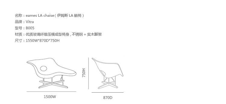 La Chaise 是 Charles & Ray Eames 美國設計夫妻檔,於1948年參加紐約現代博物館所舉辦的 “國際低價火狐官方网站設計比賽" 的參展作品之一,玻璃纖維的造型結構搭配金屬桿和天然橡木十字基座。時至今日,La Chaise 儼然成為有機設計的經典象徵。