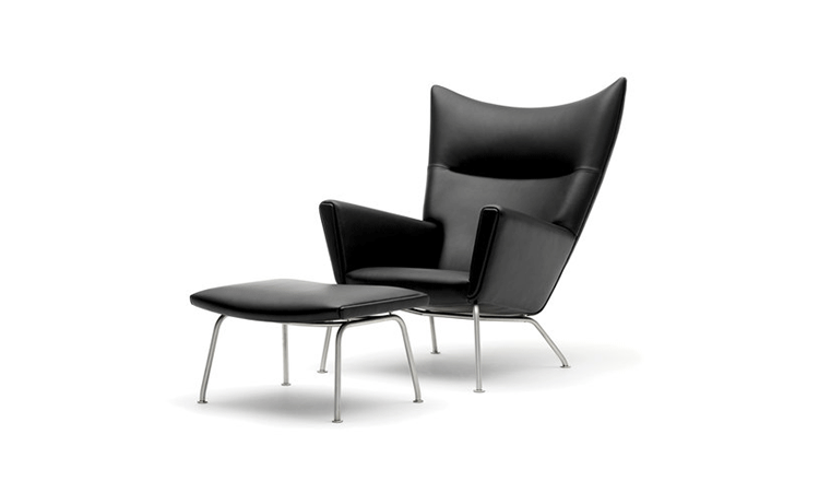 Wing Chair 典型的 Hans J. Wegner 設計,雕塑般的立體線條,讓這張椅子像藝術品般的獨佔一方。寧靜、祥和、平衡的鮮明的個性,來自椅背的弧度、轉角的收邊、肩線的溝槽和襯墊扶手。