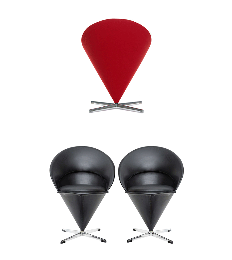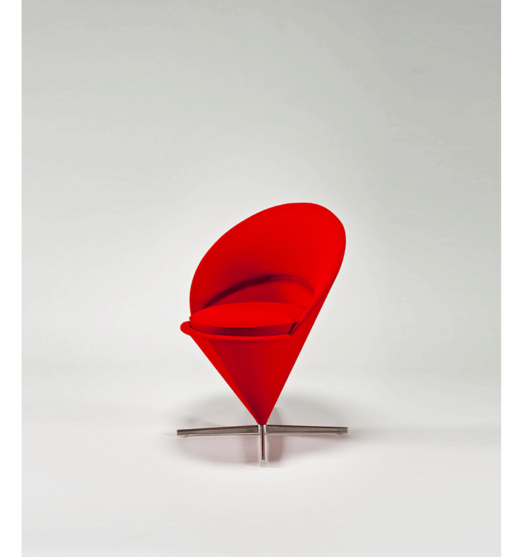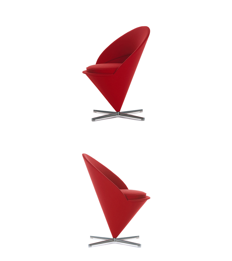 Cone 就是這張椅子的形狀,像個冰淇淋筒般的尖錐,充滿了甜蜜的感覺,是 Verner Panton (1926-1998) 的驚世大作。