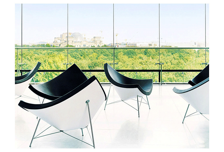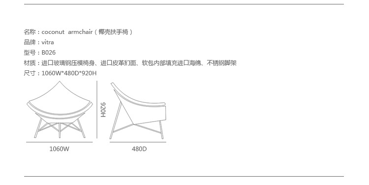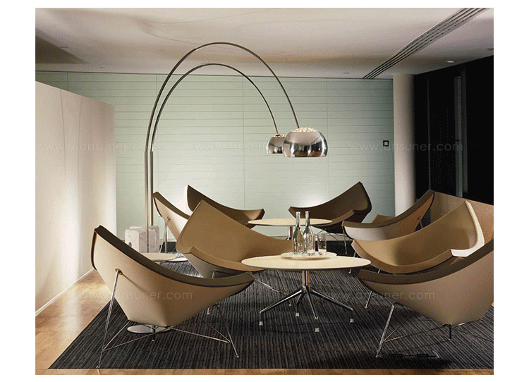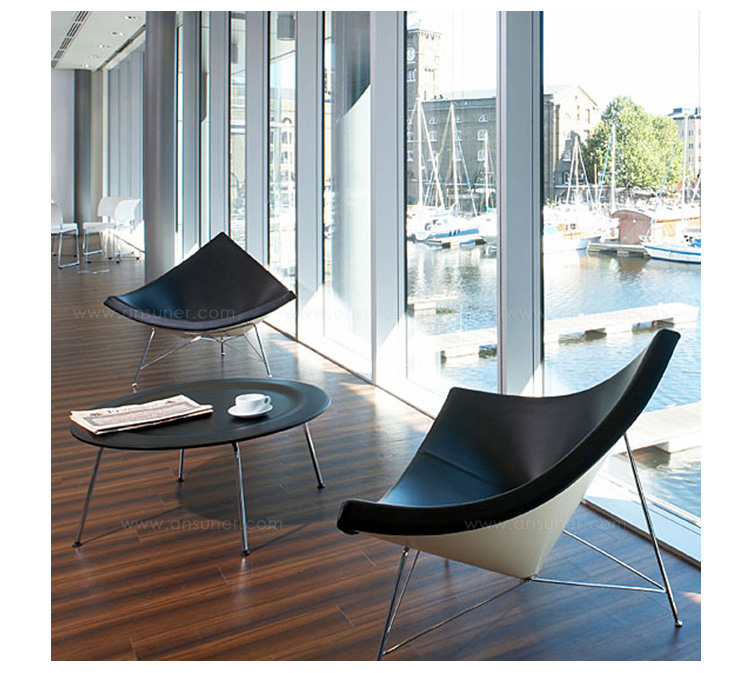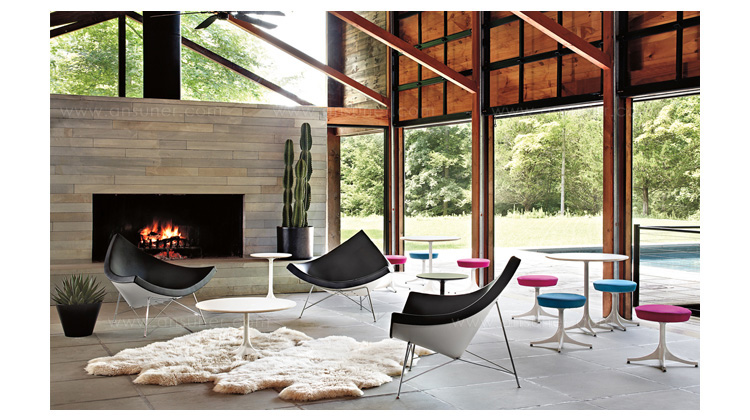 玻璃钢休闲椅——椰子椅(Coconut Chair)是由George Nelson设计工作室创作的。George Nelson将椰子分为八个部分,取其中之一作为椅子的外形。椰子椅(Coconut Chair)凭借着它可爱的造型、精简的结构和极大的视觉冲击力,改变了美式火狐官方网站的外观和人们对它的印象,成为20世纪50年代的一个设计经典。