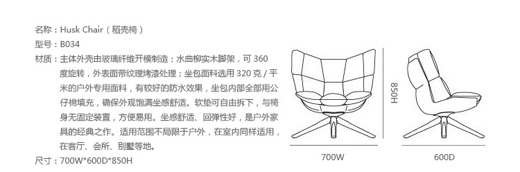 稻壳扶手椅 (Husk Armchair)是著名的西班牙火狐HUOHU(中国)帕奇希娅·奥奇拉在2011年设计的户外火狐官方网站,稻壳扶手椅(Husk Armchair)在米兰火狐官方网站展中成为了最让人瞩目的一款户外火狐官方网站,带有扶手,它的每个部件都经过精心的设计,创意的设计、柔软的坐感、独特的外观,给用户提供了一个现代、舒适、简约的休息体验。面料有红、绿、蓝、灰白四色,因为是新品,如果客户有需要,我们可以为客户定做其他颜色的Husk Armchair。