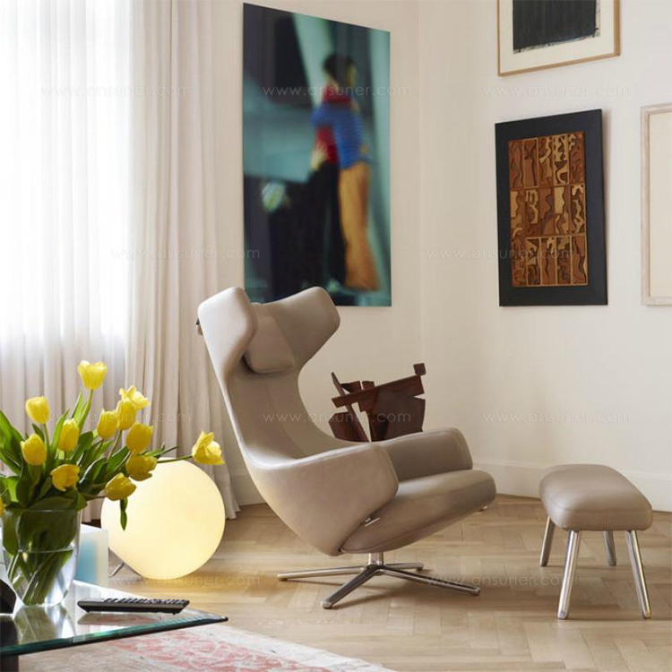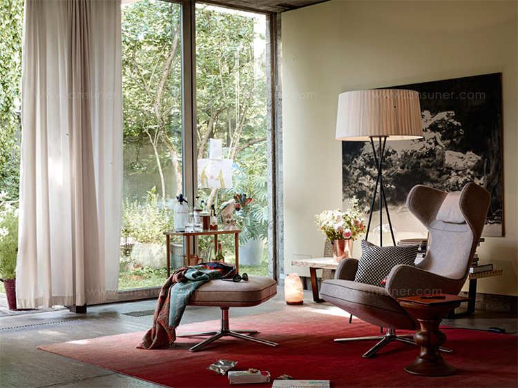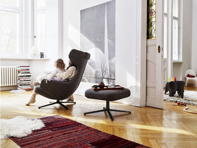 “grand repos lounge chair and ottoman(grand repos 休闲椅&脚踏)由设计大师Antonio Citterio所设计的独特的,绝无仅有的休闲椅系列,椅子的创作面临的挑战如同伊姆斯夫妇当初设计著名的伊姆斯休闲椅一样,但正因如此,才能成为绝世经典。grand repos系列休闲椅采用钢制铝合金脚架、聚氨酯海绵填充、高级布艺扪面,可随意调整坐姿和高度,也可以放平躺,配上舒适的羽毛衬垫,无论阅读或者休憩,都非常舒服,符合人体工学,高档舒适,是办公,会议的理想选择。意大利火狐HUOHU(中国)和建筑师 Antonio Citterio赋予了这边椅子永恒的优雅气质与无与伦比的舒适,是当代设计的经典,无论用在办公、商业、家庭都是非常高贵大气的。”