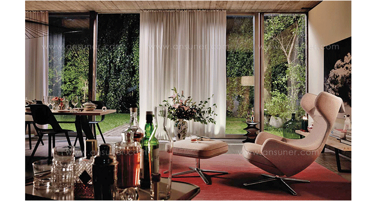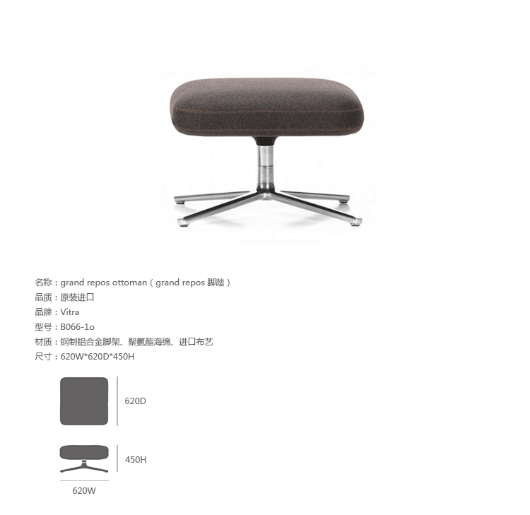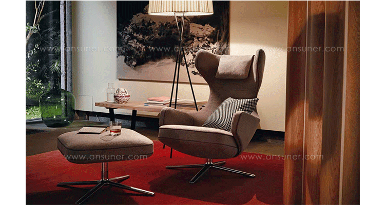 grand repos lounge chair and ottoman(grand repos 休闲椅&脚踏)由设计大师Antonio Citterio所设计的独特的,绝无仅有的休闲椅系列,椅子的创作面临的挑战如同伊姆斯夫妇当初设计著名的伊姆斯休闲椅一样,但正因如此,才能成为绝世经典。grand repos系列休闲椅采用钢制铝合金脚架、聚氨酯海绵填充、高级布艺扪面,可随意调整坐姿和高度,也可以放平躺,配上舒适的羽毛衬垫,无论阅读或者休憩,都非常舒服,符合人体工学,高档舒适,是办公,会议的理想选择。意大利火狐HUOHU(中国)和建筑师 Antonio Citterio赋予了这边椅子永恒的优雅气质与无与伦比的舒适,是当代设计的经典,无论用在办公、商业、家庭都是非常高贵大气的。