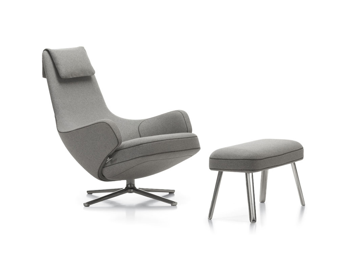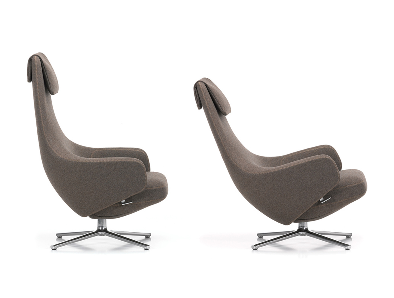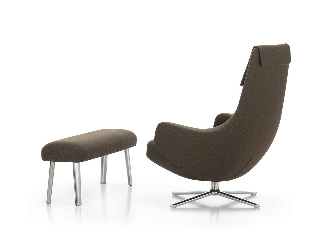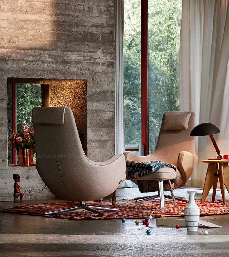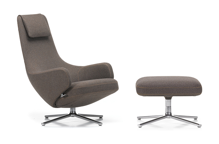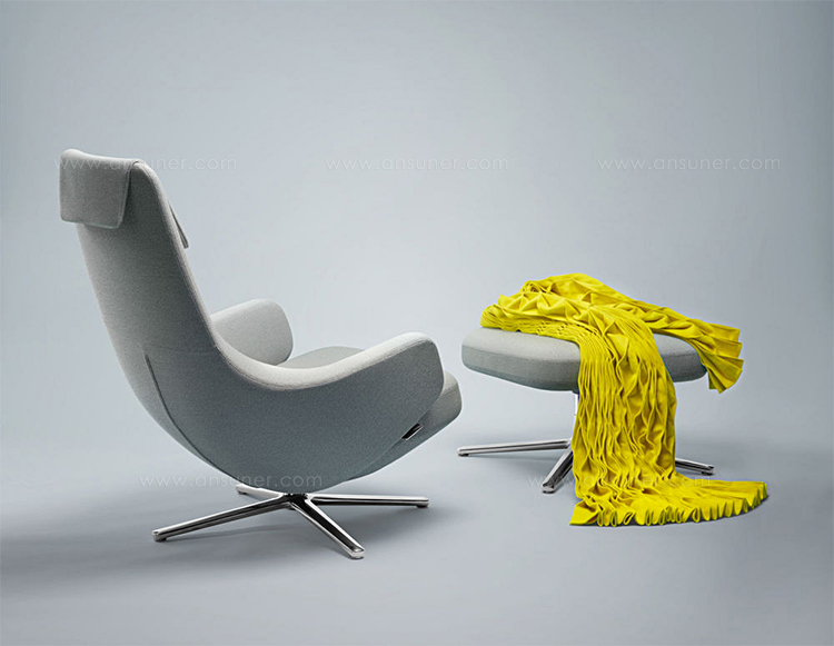 "repos lounge chair and ottoman(repos休闲椅&脚踏)由设计大师Antonio Citterio所设计。repos系列休闲椅采用钢制铝合金脚架、聚氨酯海绵填充、高级布艺扪面,可随意调整坐姿和高度,也可以放平躺,配上舒适的羽毛衬垫,无论阅读或者休憩,都非常舒服,符合人体工学,高档舒适,是办公,会议的理想选择。意大利火狐HUOHU(中国)和建筑师 Antonio Citterio赋予了这边椅子永恒的优雅气质与无与伦比的舒适,是当代设计的经典,无论用在办公、商业、家庭都是非常高贵大气的。