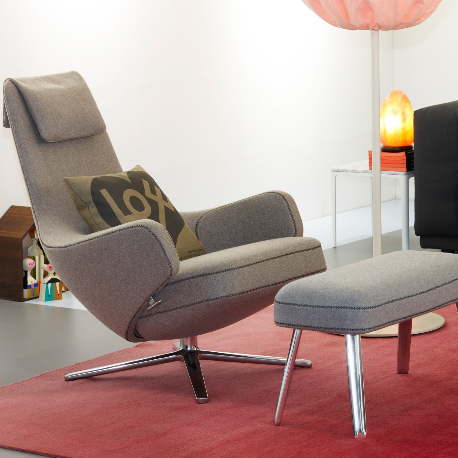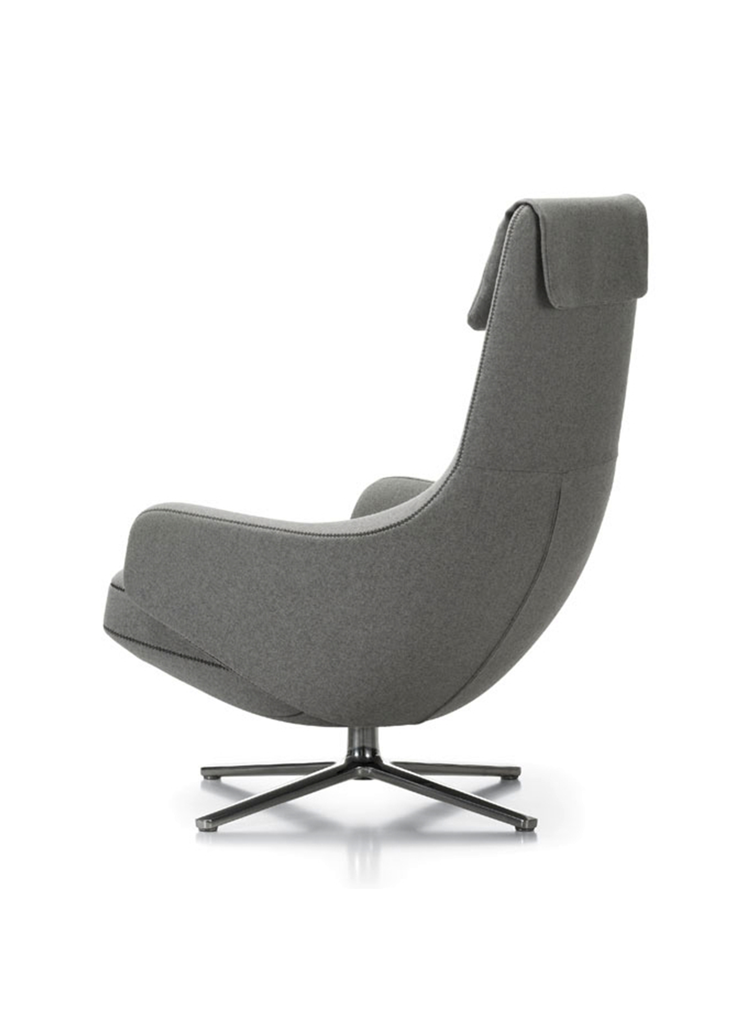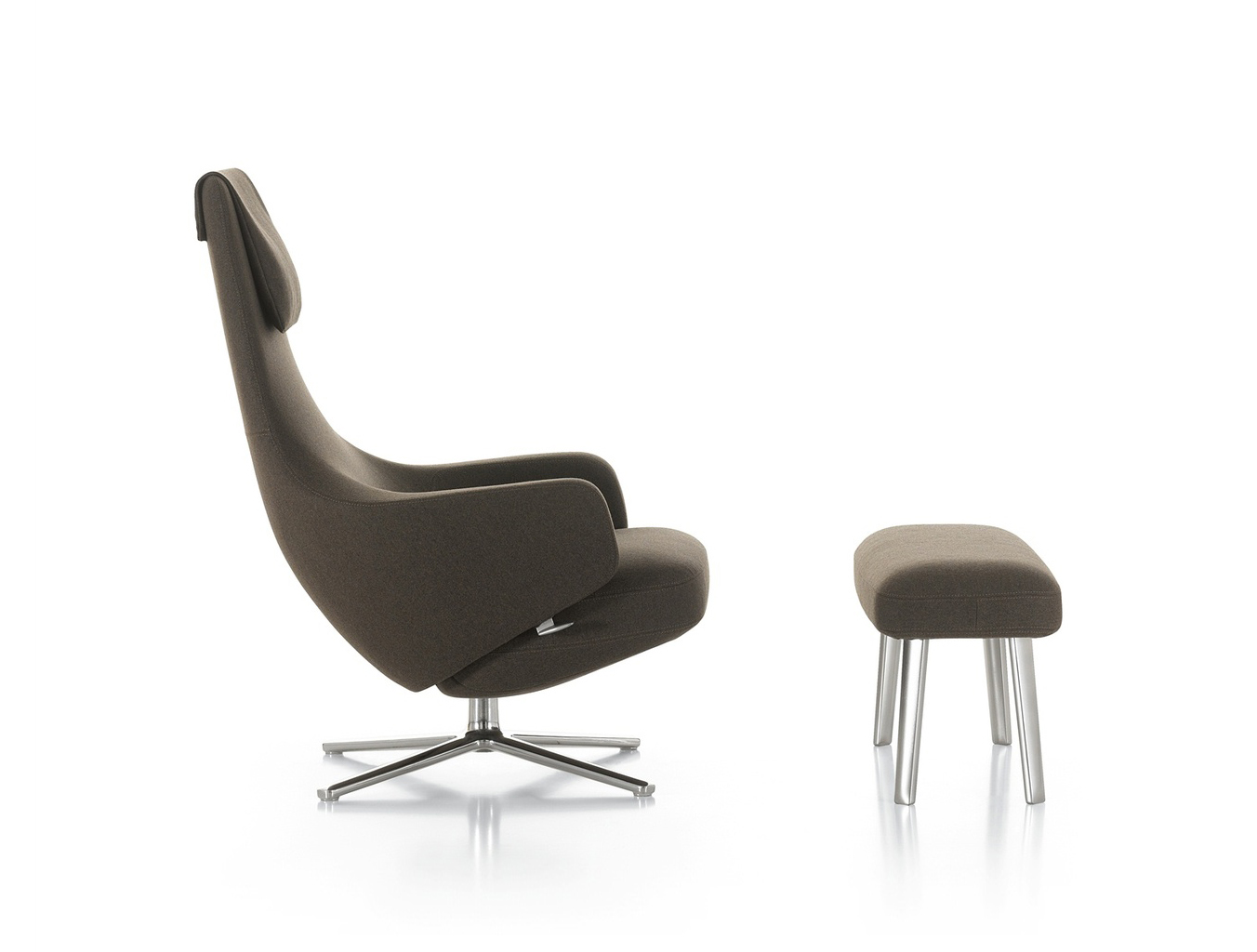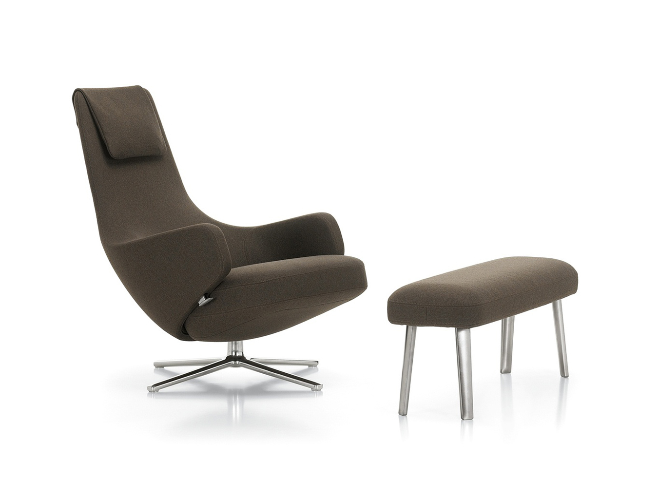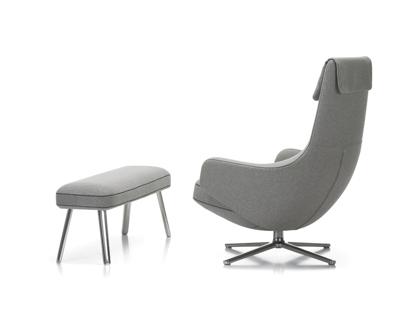 "repos lounge chair and ottoman(repos休闲椅&脚踏)由设计大师Antonio Citterio所设计。repos系列休闲椅采用钢制铝合金脚架、聚氨酯海绵填充、高级布艺扪面,可随意调整坐姿和高度,也可以放平躺,配上舒适的羽毛衬垫,无论阅读或者休憩,都非常舒服,符合人体工学,高档舒适,是办公,会议的理想选择。意大利火狐HUOHU(中国)和建筑师 Antonio Citterio赋予了这边椅子永恒的优雅气质与无与伦比的舒适,是当代设计的经典,无论用在办公、商业、家庭都是非常高贵大气的。