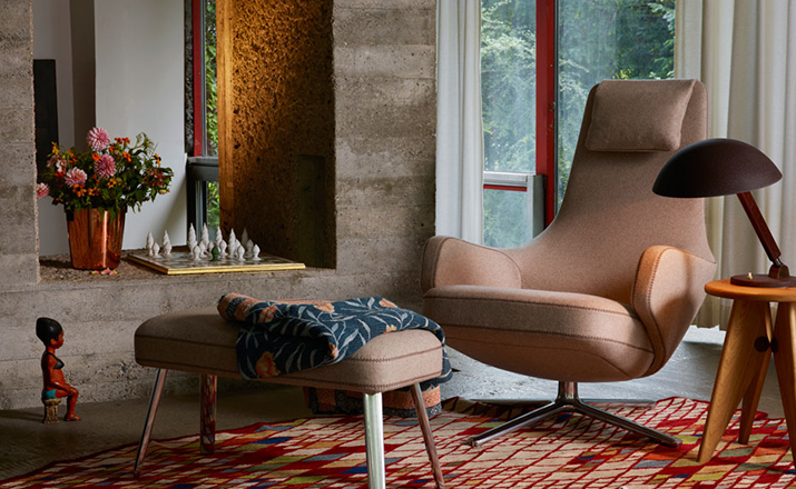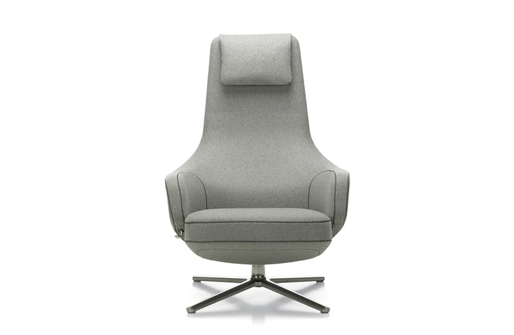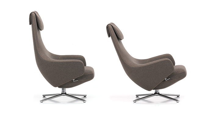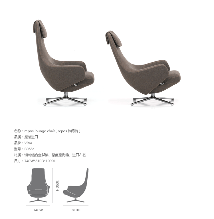repos lounge chair and ottoman(repos休闲椅&脚踏)由设计大师Antonio Citterio所设计。repos系列休闲椅采用钢制铝合金脚架、聚氨酯海绵填充、高级布艺扪面,可随意调整坐姿和高度,也可以放平躺,配上舒适的羽毛衬垫,无论阅读或者休憩,都非常舒服,符合人体工学,高档舒适,是办公,会议的理想选择。意大利火狐HUOHU(中国)和建筑师 Antonio Citterio赋予了这边椅子永恒的优雅气质与无与伦比的舒适,是当代设计的经典,无论用在办公、商业、家庭都是非常高贵大气的。