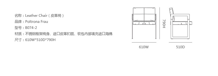 "Leather皮革椅系列火狐官方网站线条干净简明,“X”交叉造型或者“H”造型脚架支撑着坐垫,新颖独特,由Jean-Marie Massaud设计。它采用外露的金属架,有三种不同的做工,座椅为聚氨酯泡沫材料,靠背较低,坐垫宽敞。有两种面料可供选择:天然皮革和纺织面料。两种款式都有皮革和染色纺织面料的扶手和同款的靠枕。沙发椅的造型形式严谨,它的特点和个性特征与Poltrona Frau现代室内家居的设计非常统一协调。