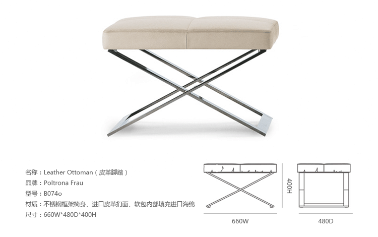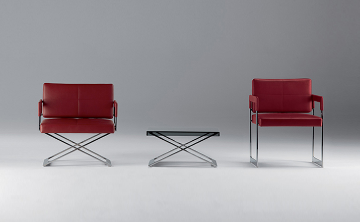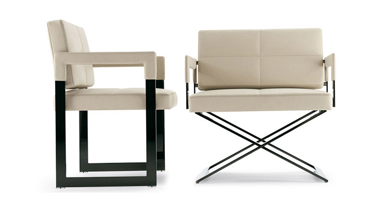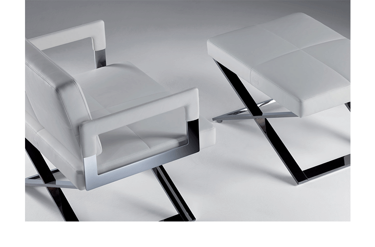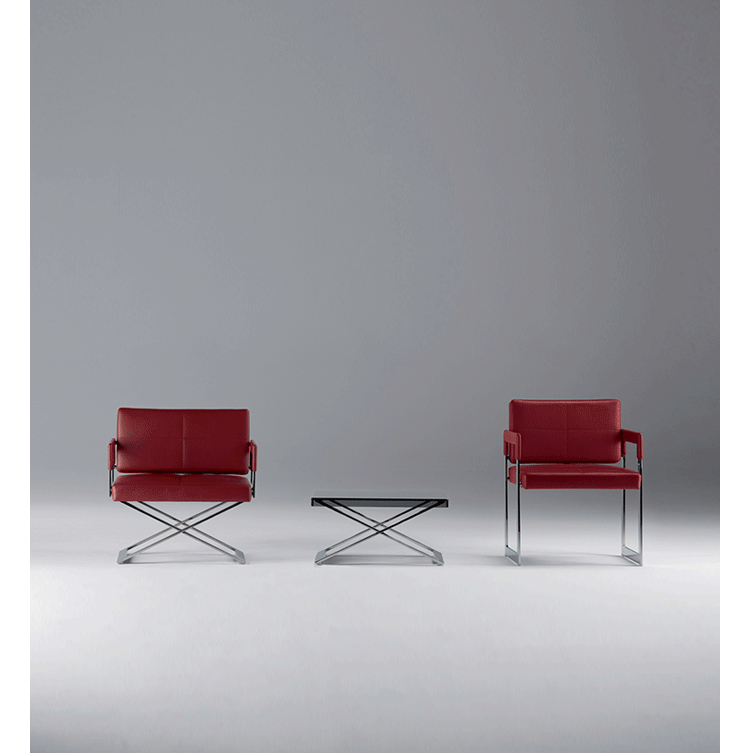 "Leather皮革椅系列火狐官方网站线条干净简明,“X”交叉造型或者“H”造型脚架支撑着坐垫,新颖独特,由Jean-Marie Massaud设计。它采用外露的金属架,有三种不同的做工,座椅为聚氨酯泡沫材料,靠背较低,坐垫宽敞。有两种面料可供选择:天然皮革和纺织面料。两种款式都有皮革和染色纺织面料的扶手和同款的靠枕。沙发椅的造型形式严谨,它的特点和个性特征与Poltrona Frau现代室内家居的设计非常统一协调。