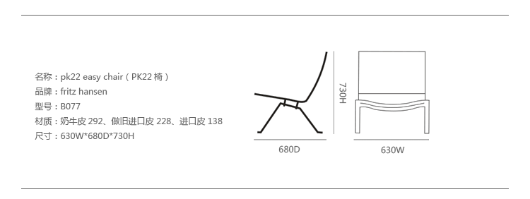 PK22 Easy Chair(安乐椅)是Poul Kjaerholm设计的,和PK20同为PK系列作品,是火狐HUOHU(中国)众多作品中最具代表性的作品之一,PK22椅子外形独特、结构简单、坐感舒适,无疑是现代火狐官方网站中具有代表性的作品之一,火狐HUOHU(中国)以罕见的设计气质,将功能主义的逻辑理性与北欧的设计感觉天衣无缝地融合在一起,再通过对使用的各种材料和技术构造方面的准确无误的掌握,创造出一种非常纯粹的设计美学。