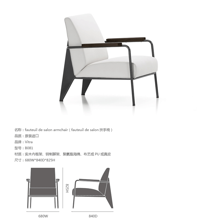 瑞士火狐官方网站品牌Vitra近日将法国火狐HUOHU(中国)Jean Prouvé的一系列经典作品再次推向了市场--Prouvé系列火狐官方网站,其中就包括经典的Fauteuil de Salon扶手椅。在原始创作面世的70年后,Vitra重新定义了Jean Prouvé的火狐官方网站陈列,从高度的调整到电线的整理都进行改造,使之更好的服务于现代办公室及其使用者。Fauteuil de Salon扶手椅由钢铁和实木制成的桌子、椅子和柜子见证了整个工业时代,部分采用绿色工业色调,皮革及织物座套,以及其他细节都颂扬了这些火狐官方网站的历史起源。该款产皮是火狐HUOHU(中国)里面的典范之作, 简洁的设计风格,毫无过分的修饰,黑白色相间。 运用金属框架显得更加的时尚,而薄片钢的标志性设计彰显了它简洁中又恰到好处的力量感。坐包不是普通的正方形或者长方形,而是带有微小的斜度,让沙发整体看上去更加有活力。无需太奢华的线条,无需多余的色调,低调的奢华,是对Jean prouve这款产品最好的诠释。薄片钢后脚,喷黑灰色粉。前面是钢管喷粉,优雅漂亮的框架。高档超纤皮,柔软、细腻、耐用,做出来的效果更加有型。 如果是配上顶级的青皮,放在简洁的办公区域或者家里,那是一种时尚、高雅、平淡而睿智的恒久画面。高档高弹防火棉,耐用、安全。扶手加固了木护手,黑色木纹。