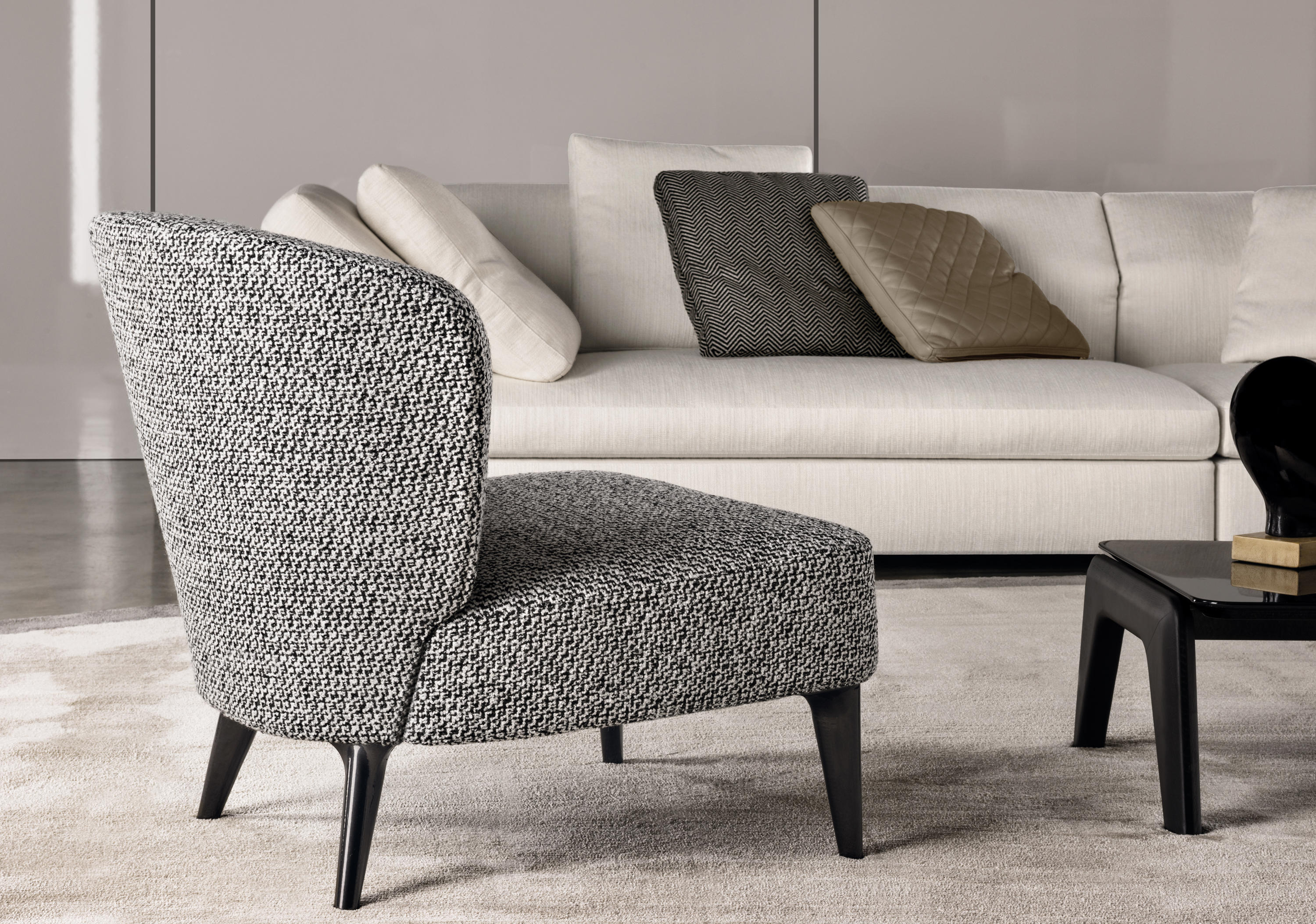 阿斯顿沙发、靠椅、脚垫与坐卧两用沙发拥有呼之欲出的复古韵味,结合唯美线条、轻盈廓形与精准封套,淋漓尽致地展现出超凡卓绝的手工技艺。