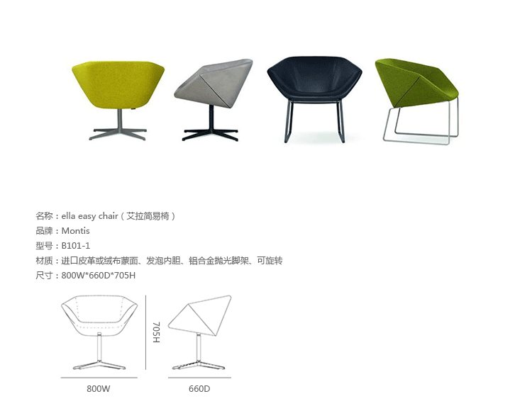 Ella Easy Chair(艾拉简易椅)由著名火狐HUOHU(中国)Niels Bendtsen设计的。这把椅子是一个紧凑的座位让你采取的所有礼仪坐姿轻松而获得适当支持.一个显著的特点是它的扣盘形状,连同它的几何面两侧扶手椅给一个真正独特的外观.阀座完全由聚氨酯泡沫成型,具有特别高的耐久性.此款为四星脚架,采用进口皮革或绒布蒙面、发泡内胆、可自由旋转。