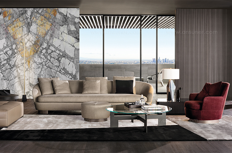系列中的所有沙发座椅都拥有环抱式的线条,柔软的座椅和靠背带来温馨愉悦的感受。 完美的造型和无可挑剔的覆面体现了源于公司多年经验的高水平技艺,充分展现出坚实的工艺水准。
