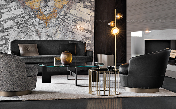 底座可以旋转的Jacques沙发拥有柔软的坐垫和靠背,带来绝佳的舒适感,尤其适合打造休闲放松的空间,可以搭配Song边几和脚凳,达到相得益彰的效果,边几不仅可以用来放置台灯,也可以用来放置各种小物件。