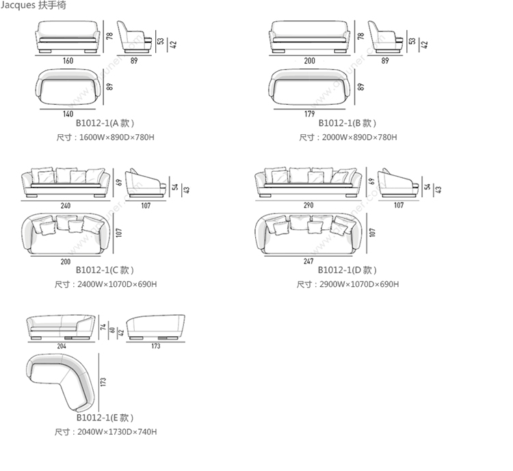 Jacques 沙发 系列尺寸/示意图