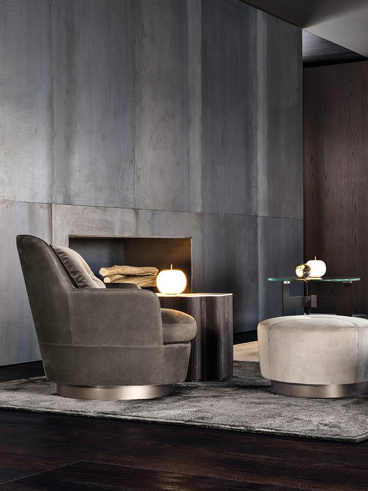 底座可以旋转的Jacques沙发拥有柔软的坐垫和靠背,带来绝佳的舒适感,尤其适合打造休闲放松的空间,可以搭配Song边几和脚凳,达到相得益彰的效果,边几不仅可以用来放置台灯,也可以用来放置各种小物件。