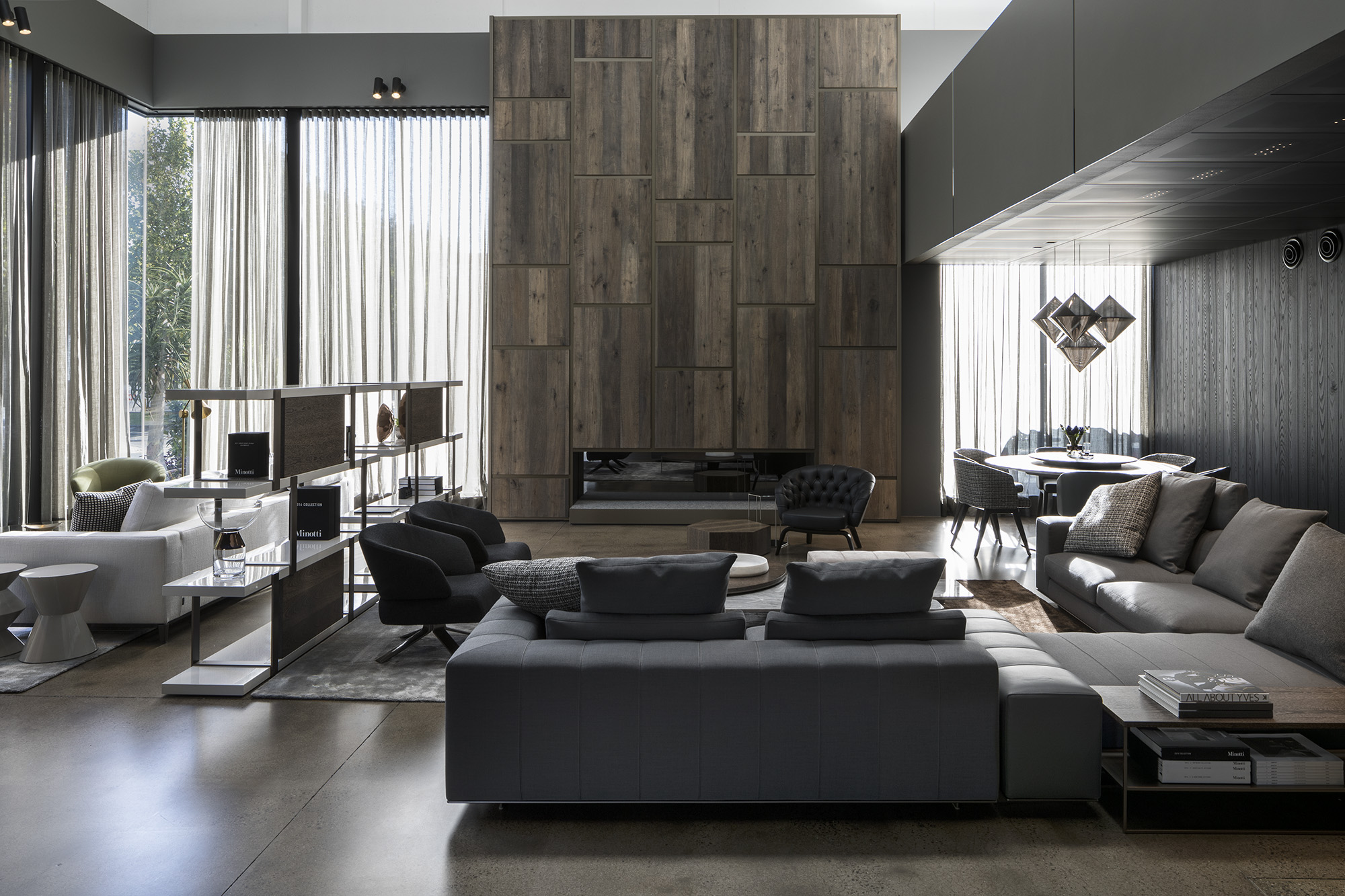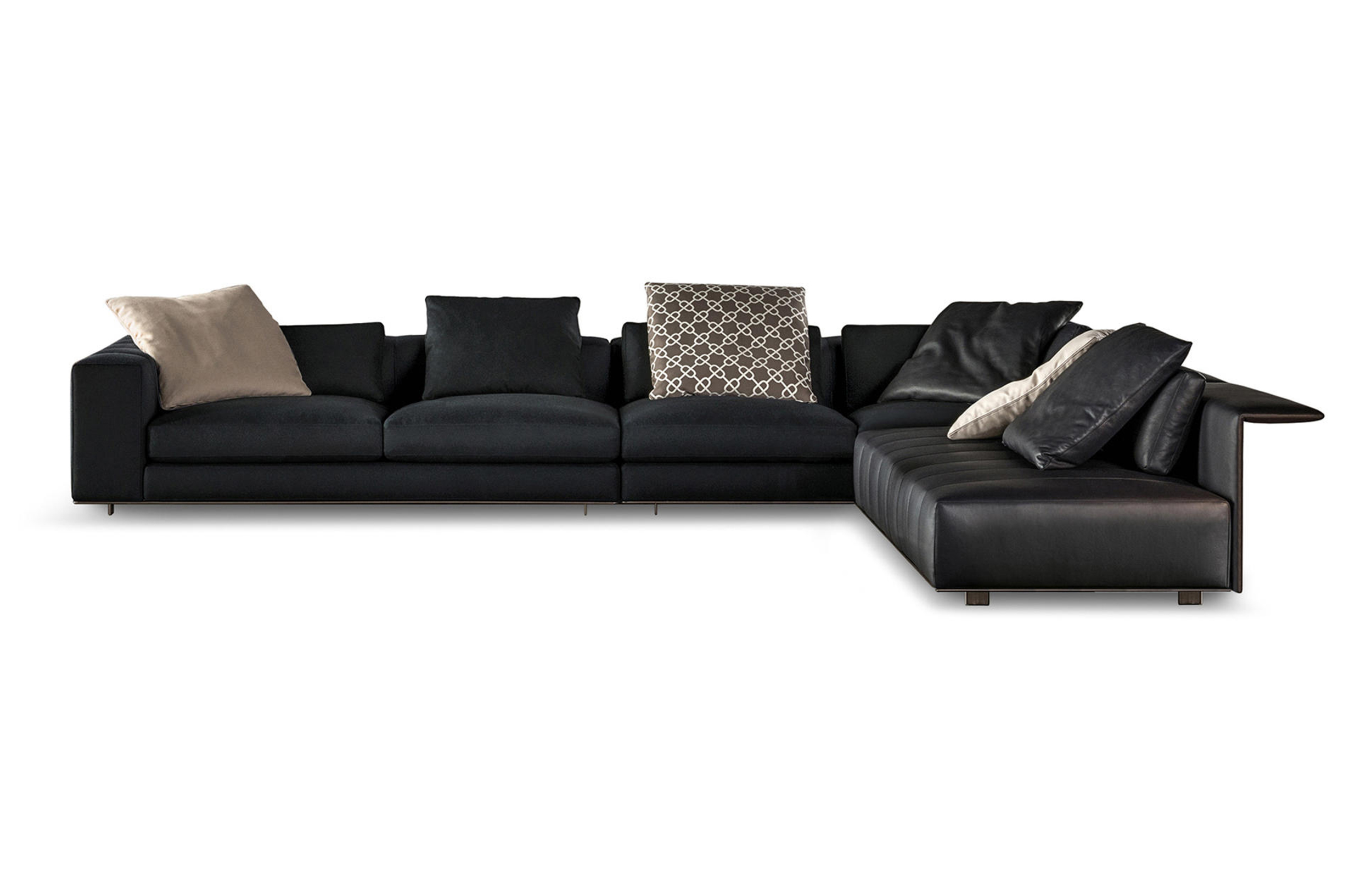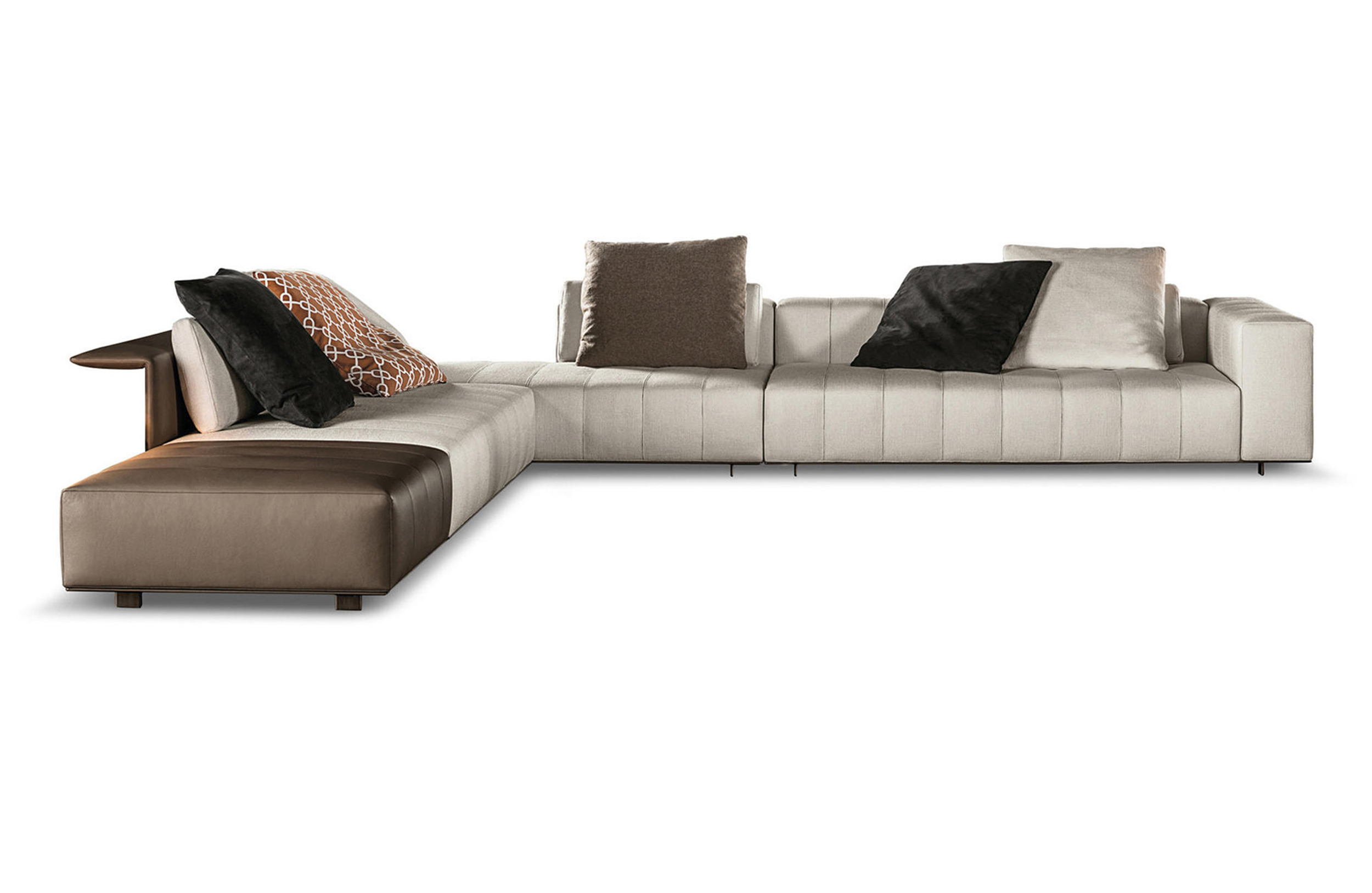 弗里曼“裁缝”项目的理念和原创性在其衍生系列弗里曼“休息室”中也有所体现。弗里曼“休息室”沙发纵深度有所降低,不仅更易搭配较小的居住空间,还可以用在接待场所,如等候室、前台区域、行政办公室。单组沙发的特点在于采用规则图形纹样的优雅缝线设计,可以自由随性地组合沙发,打造灵动的造型。“Wing”扶手拥有轻盈的线条,这要得益于采用聚氨酯为基材的泡沫金属框架。精致的包覆材料展现出公司运用复杂面料进行剪裁加工的实力。皮革和织物面料的各个部件通过浅铜色人造皮革束带和双缝线工艺连接在一起,打造出独特的纵深效果。