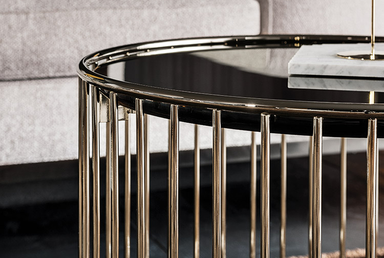 三张边几呈现出轻盈的特质。仿佛虚空的设计理念,将减法做到最大程度。纤细的支撑杆搭配具有极简主义风格的台面。非常的个性,不同寻常的表现力。“Less is more”