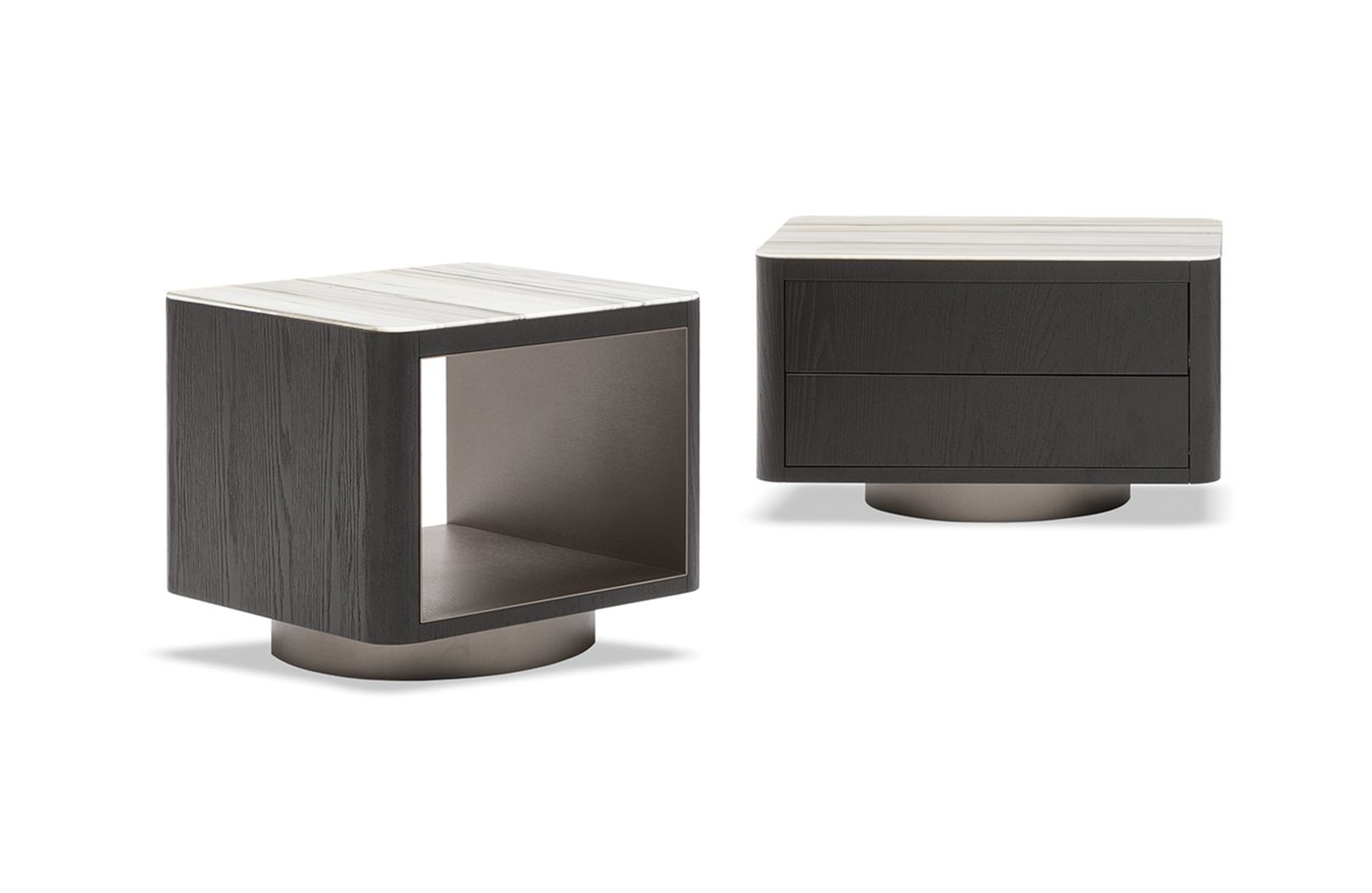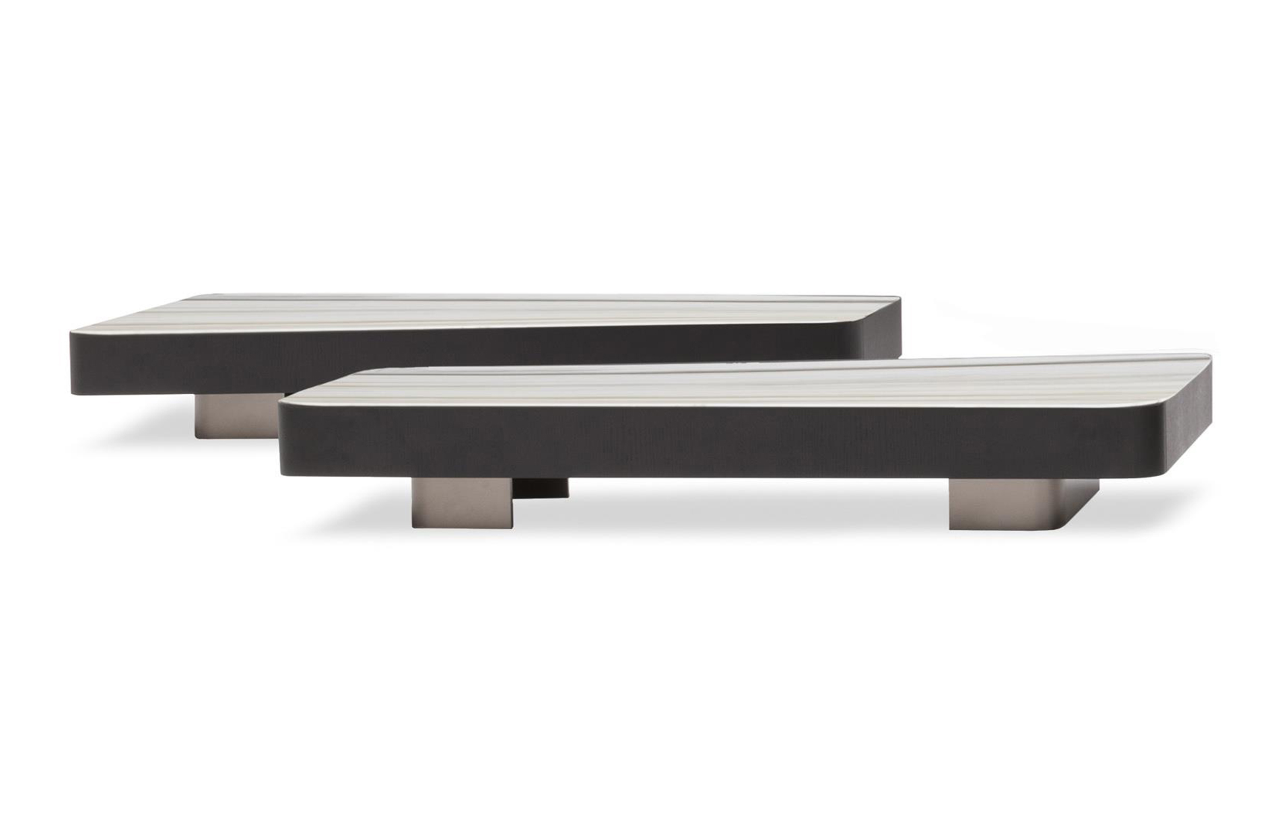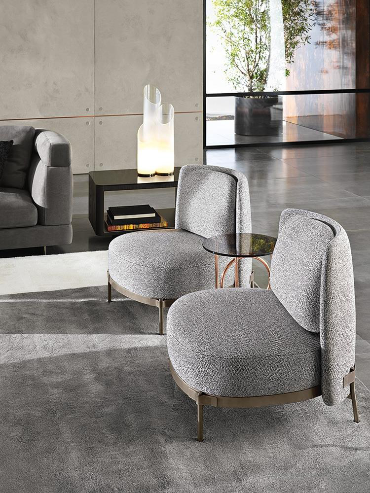 由悬挂的几何体积和较低的高度相结合形成的,在圆形、方形、矩形和梯形的版本中都有米尔顿的侧表。这些几何图形被圆角的圆角所软化,这让人想起了亚历山大“下降”座位系统的蜿蜒曲线。它们的特点是对70年代的线条进行了更为现代和装饰性的重新诠释,展示了珍贵材料和有机几何的完美结合。