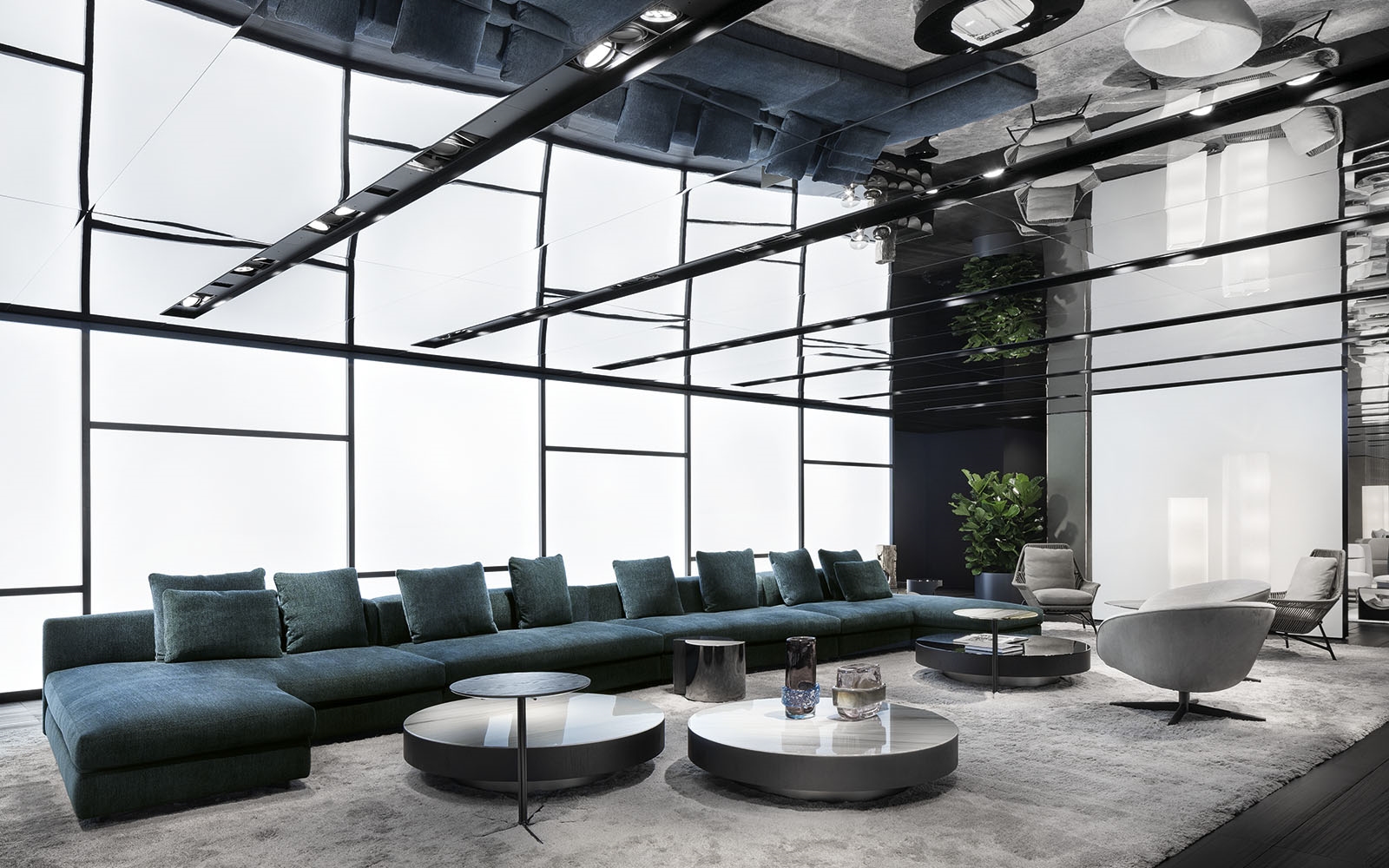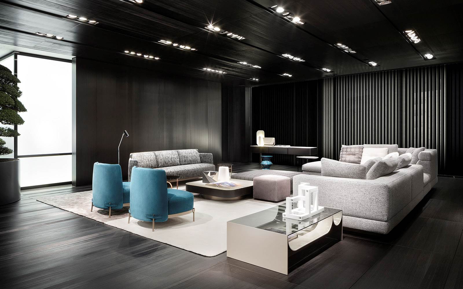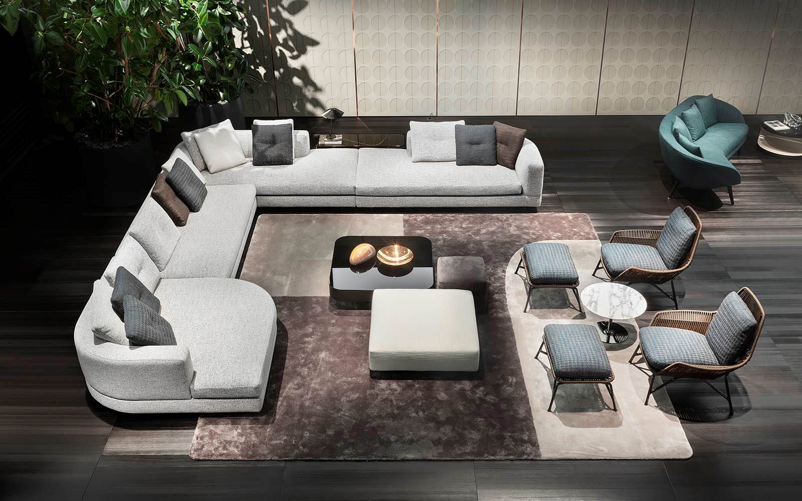 由悬挂的几何体积和较低的高度相结合形成的,在圆形、方形、矩形和梯形的版本中都有米尔顿的侧表。这些几何图形被圆角的圆角所软化,这让人想起了亚历山大“下降”座位系统的蜿蜒曲线。它们的特点是对70年代的线条进行了更为现代和装饰性的重新诠释,展示了珍贵材料和有机几何的完美结合。