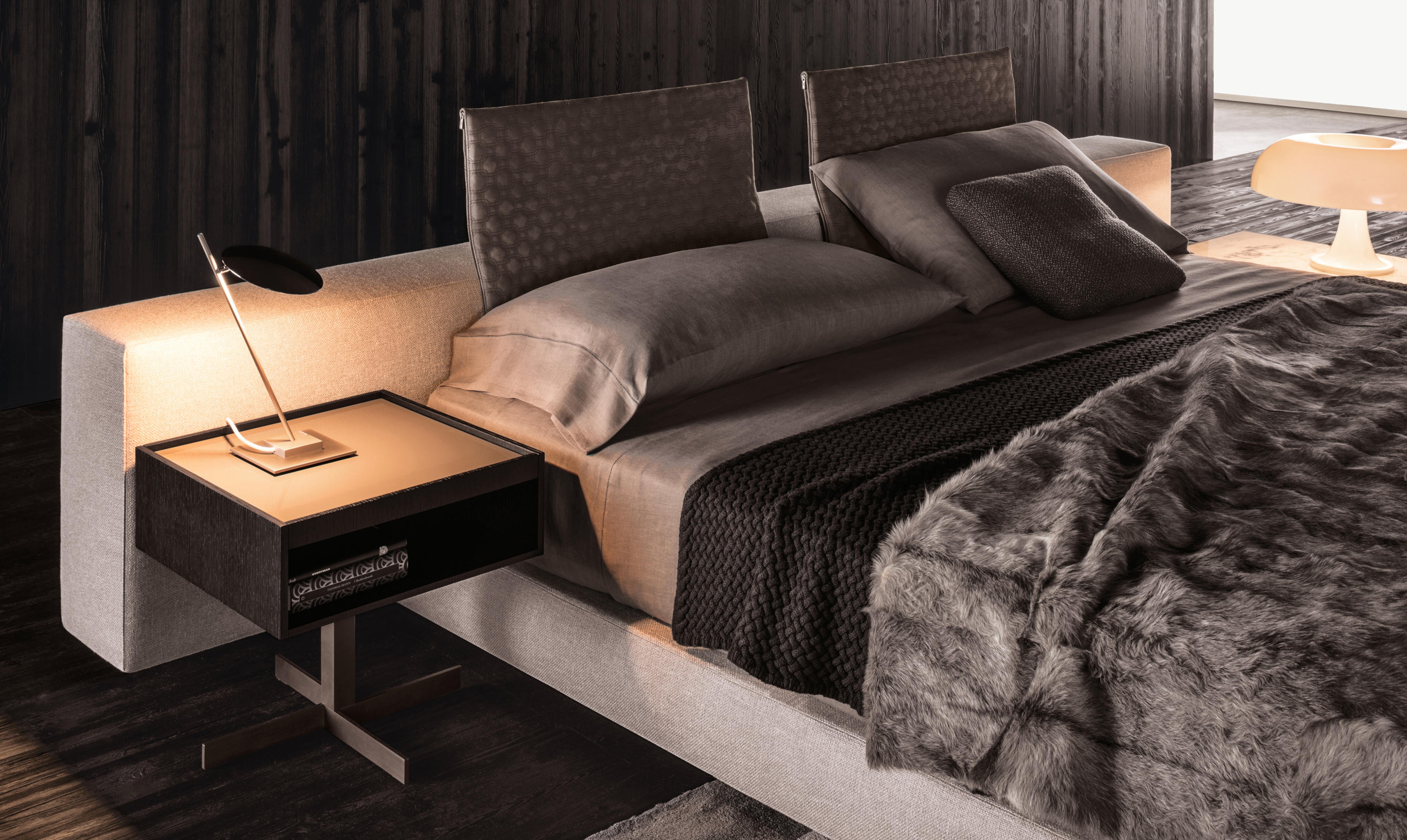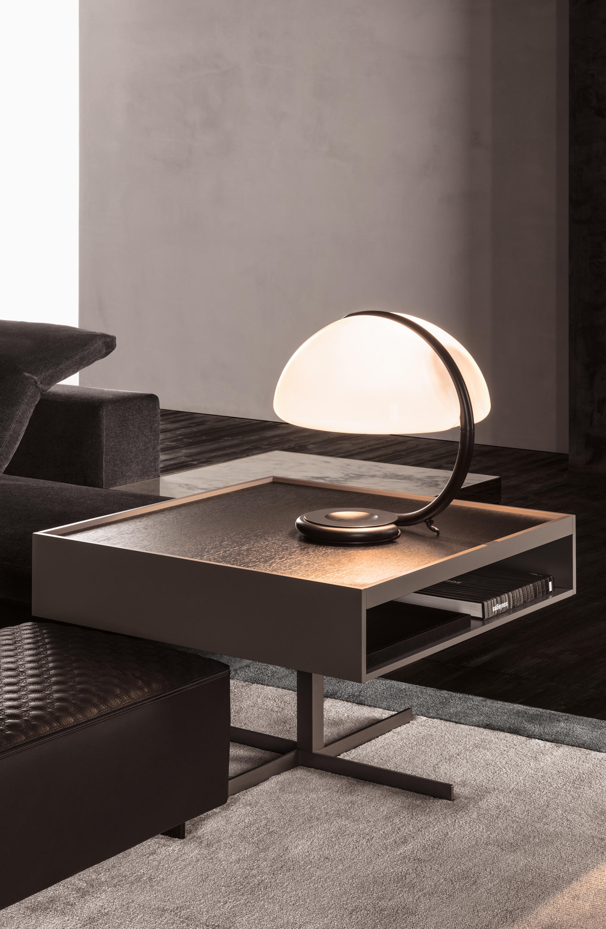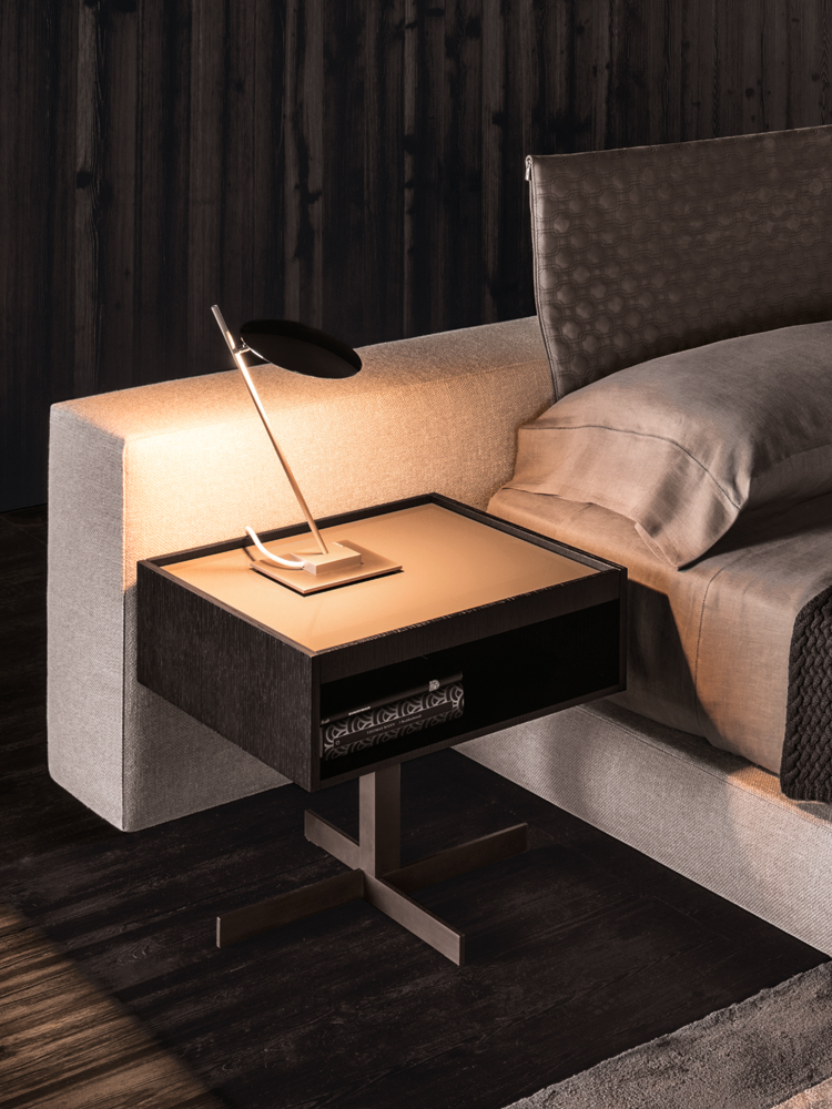 克洛塞边几特别为搭配Yang沙发系列而设计,拥有实用的置物表面和收纳空间。Close边几的理想位置可以是在靠背椅和Yang沙发之间,提供使用的置物表面:每件要用的物品近在咫尺,或是整齐地摆放在下方的收纳空间中,您可以在沙发上尽享放松时光。基座采用十字的简洁造型,采用金属制成,搭配亚光铜色表面。上方部分的置物空间采用前后皆可用的开放式设计,并且搭配一个可取下的托盘,有两个版本可供选择:一种是构架为Moka色漆面的开孔橡木,上方面板为粘土色亮光漆,内部的托盘为粘土色亚光漆;另一种是构架为粘土色亚光漆,上方面板和内部托盘为Moka色漆面的开孔橡木。除了不同尺寸的边几以外,Close系列还包括边柜、写字台和床头柜。
