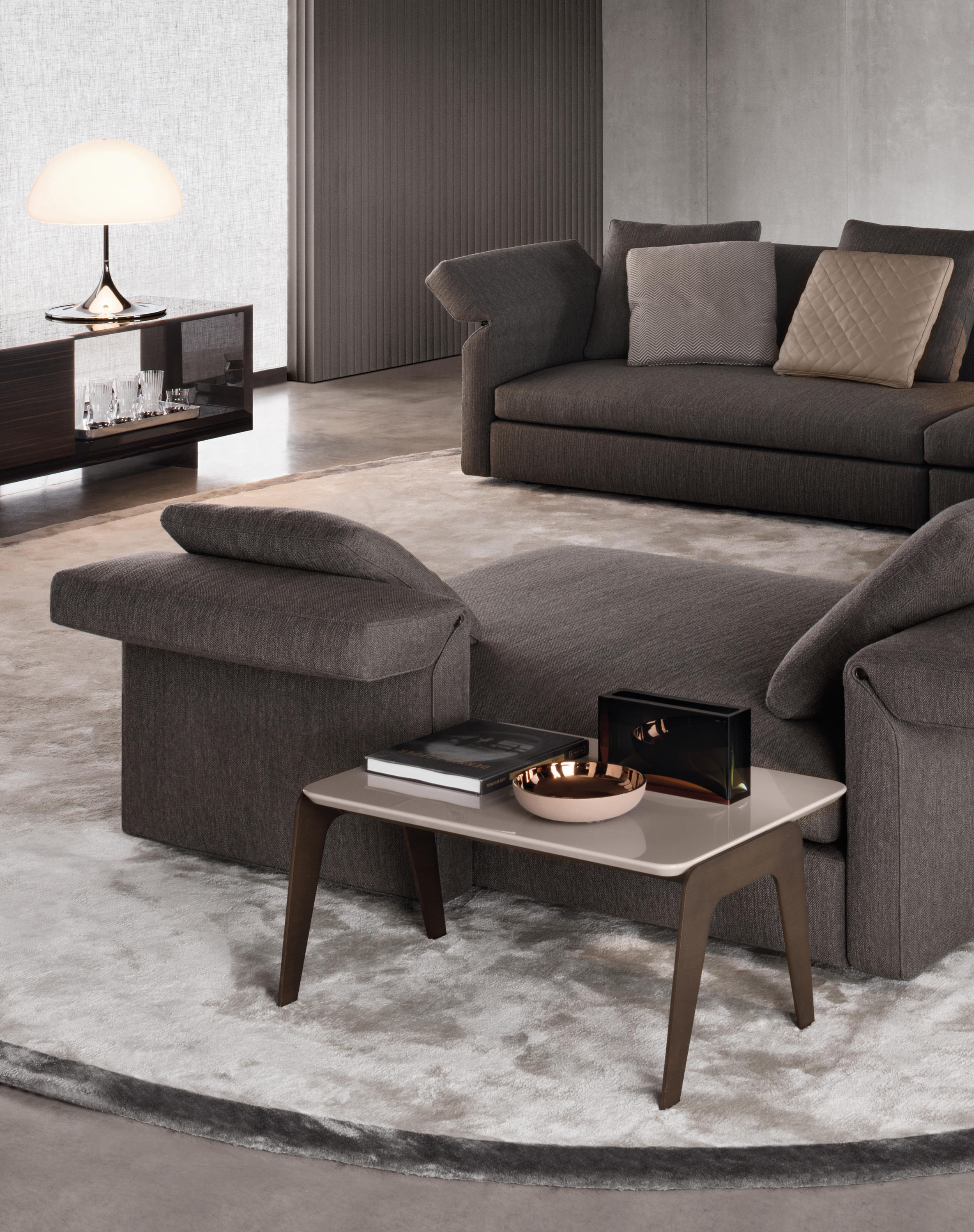 Kirk 木质底座茶几统一以矩形呈现,有三种长度可选。