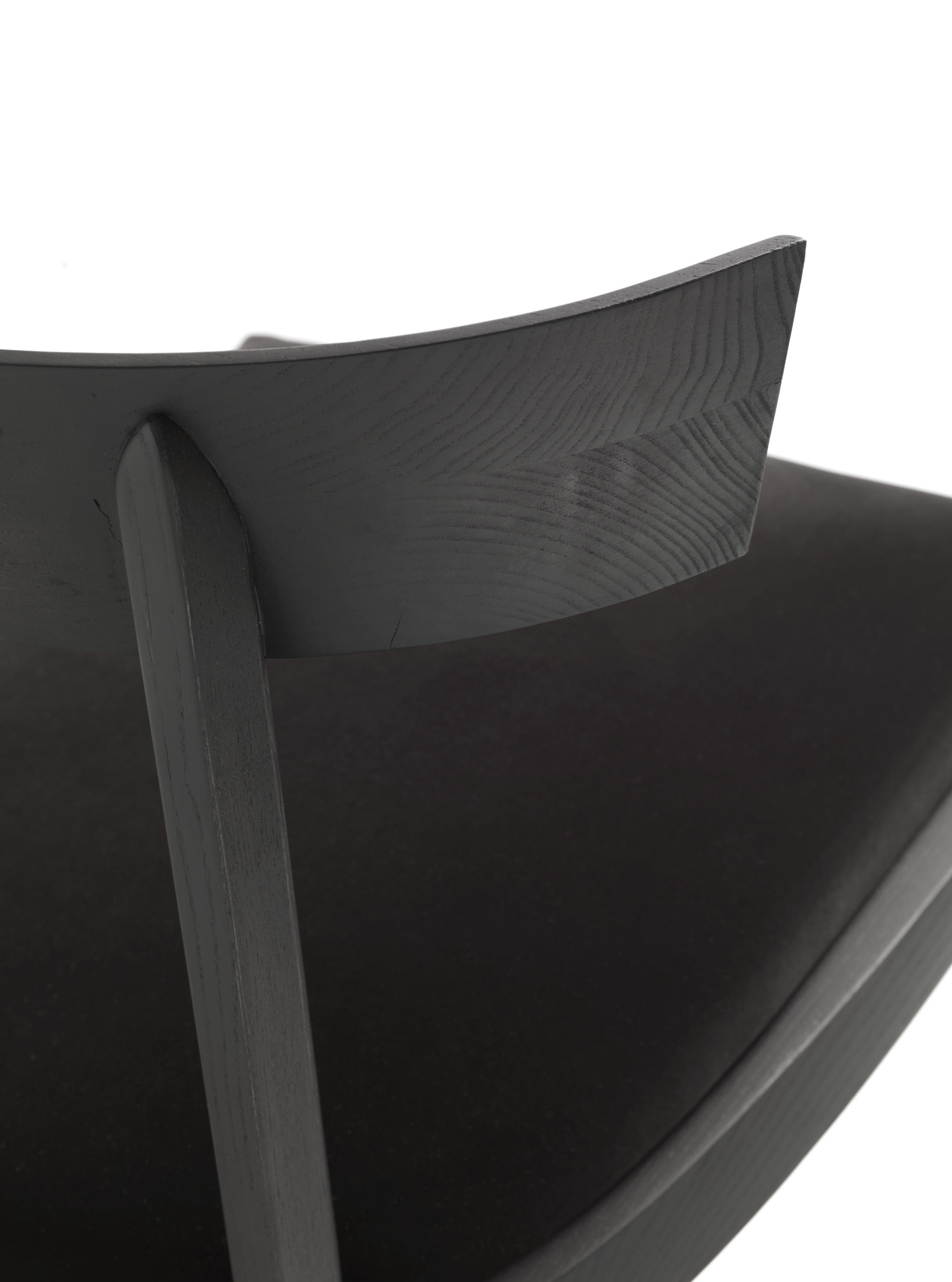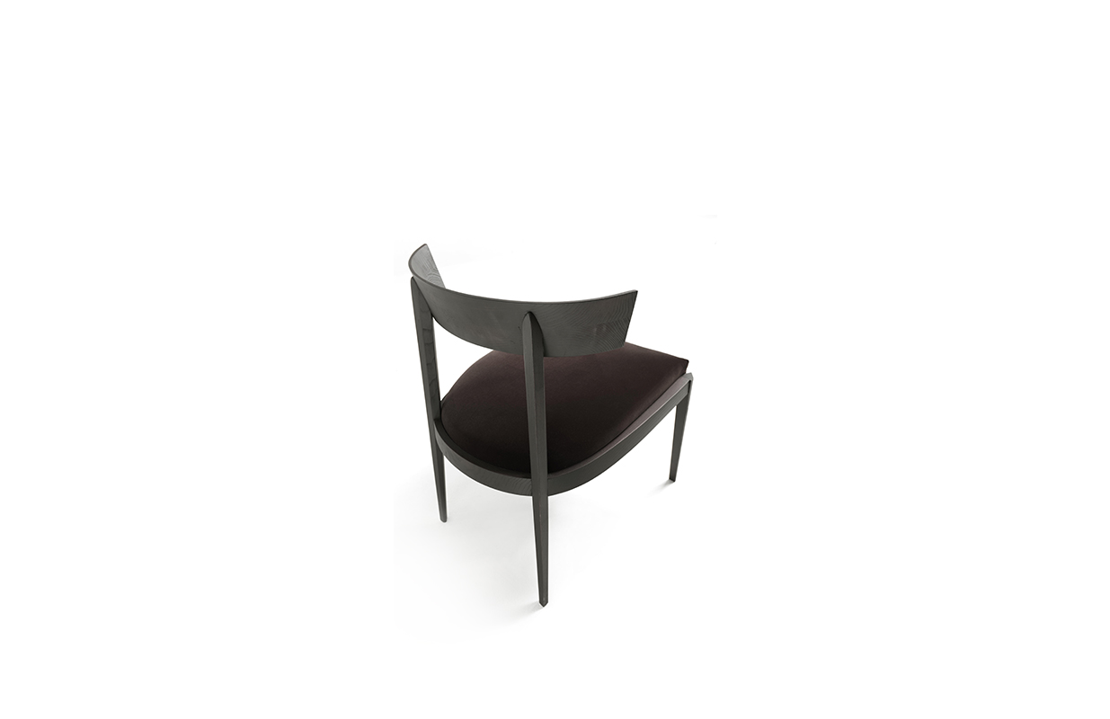 当代在椅子上,一个强大的人物,其魅力在于高度之间的对比朴实带有座位和靠背的细长的腿和严格的纯粹的线条与结构本身。