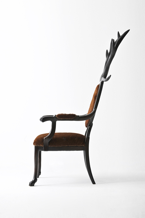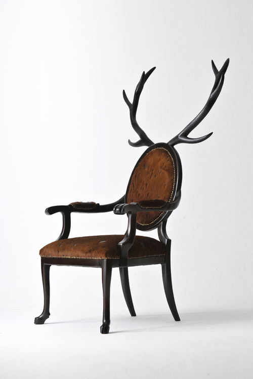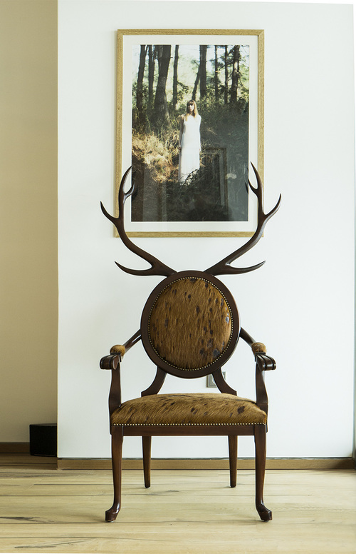 Hybrid系列的灵感来自于parahumans的神话。 这个anthro主席工会与它的主人合并为一体。 它完全是手工制作,选用了具有稀有图案的特殊皮革,并在木材上涂上了纹理漆面,以模仿鹿的外观并为使用者营造出一种动物感。