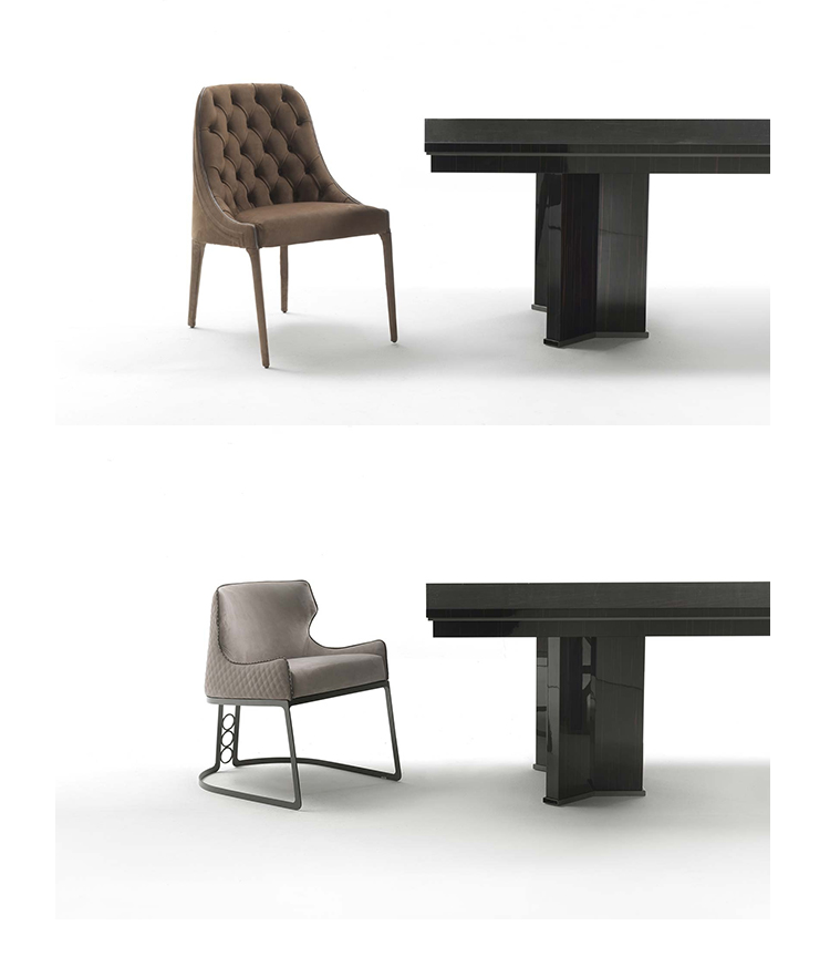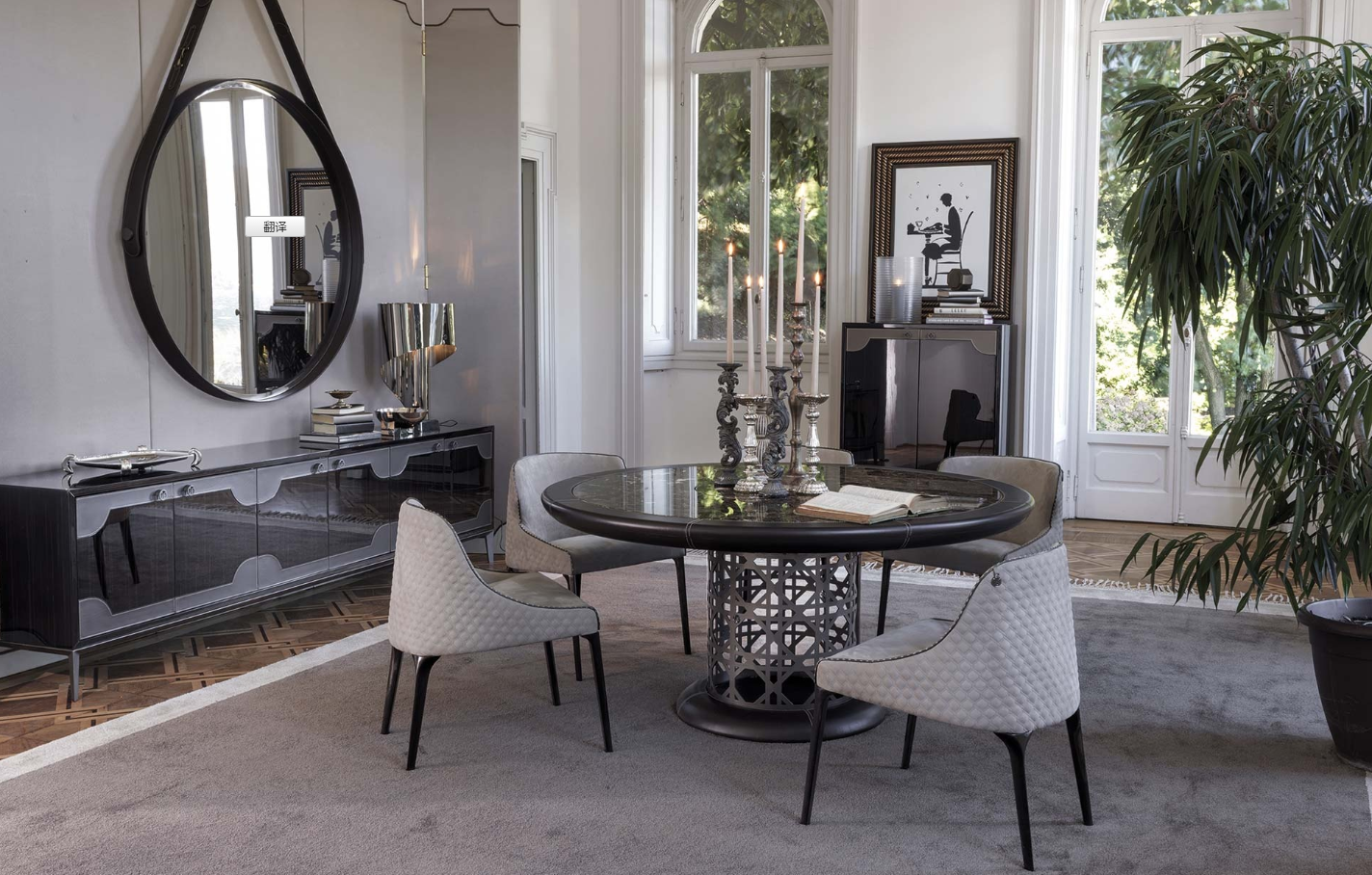 La lavorazione capitonné, di antica tradizione artigianale, impreziosisce questo modello di classica eleganza